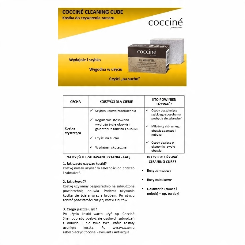 Блок, который эффективно очищает пятна и грязь на замше и нубуке. Ластик Coccine очень часто используется перед использованием других пропиток и средств по уходу за кожей. Важно то, что ластик не затрагивает слой кожи и не повреждает ее. Регулярное использование ластика гарантирует, что кожа всегда будет в отличном состоянии.