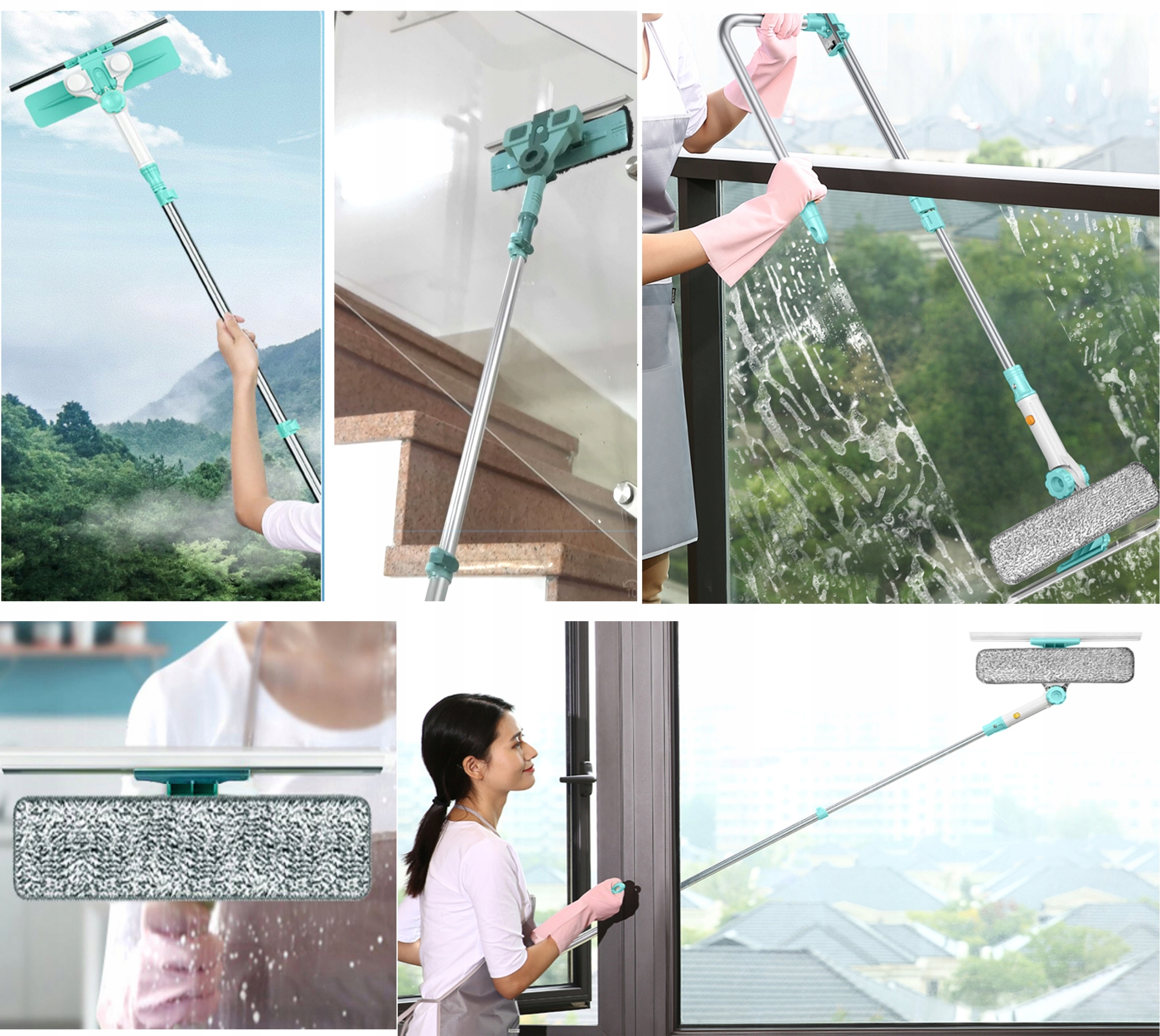 3W1Myjka Do Szyb Ręczna Myjka Do Okien Z Wysuwanym Długim Uchwytem 65-145cm