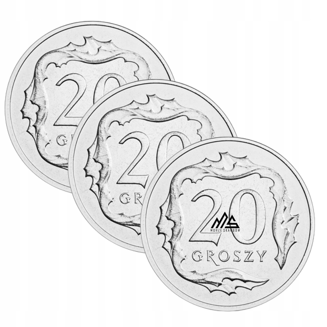 3x 20 groszy 2025 r. stan menniczy z woreczka