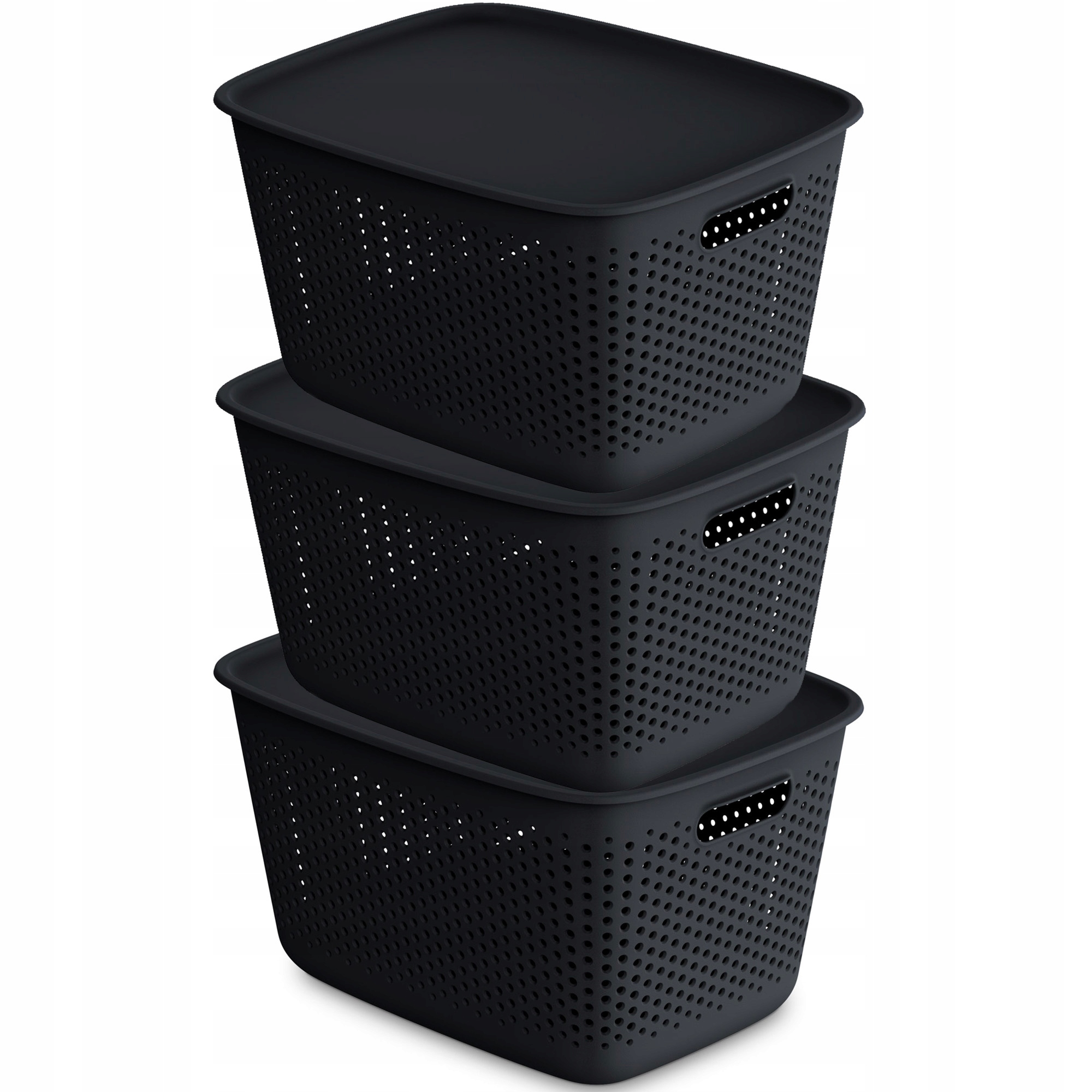 3X АЖУРНАЯ ПЛАСТИКОВАЯ КОНТЕЙНЕРНАЯ КОРОБКА С КРЫШКОЙ КОРОБКА ДЛЯ КОНТЕЙНЕРОВ 17Л ЧЕРНАЯ