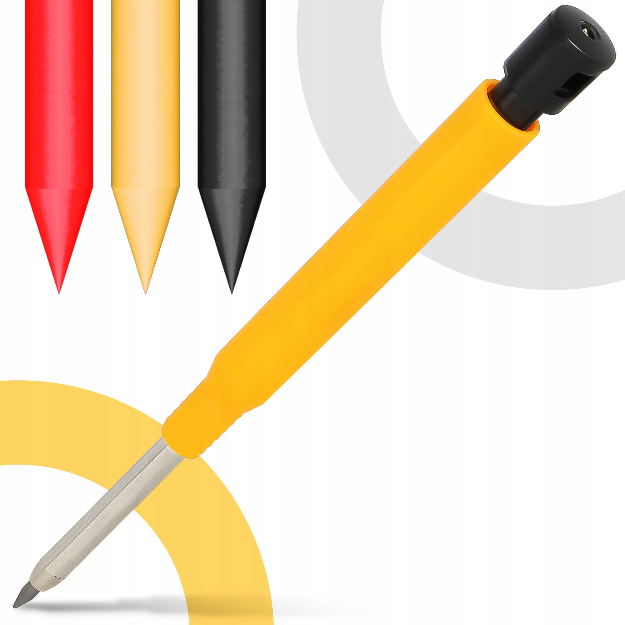 Карандаш столярный 2,8 мм 3 шт. с стержнями (черный 24 шт., желтый 12 шт., красный 12 шт.)