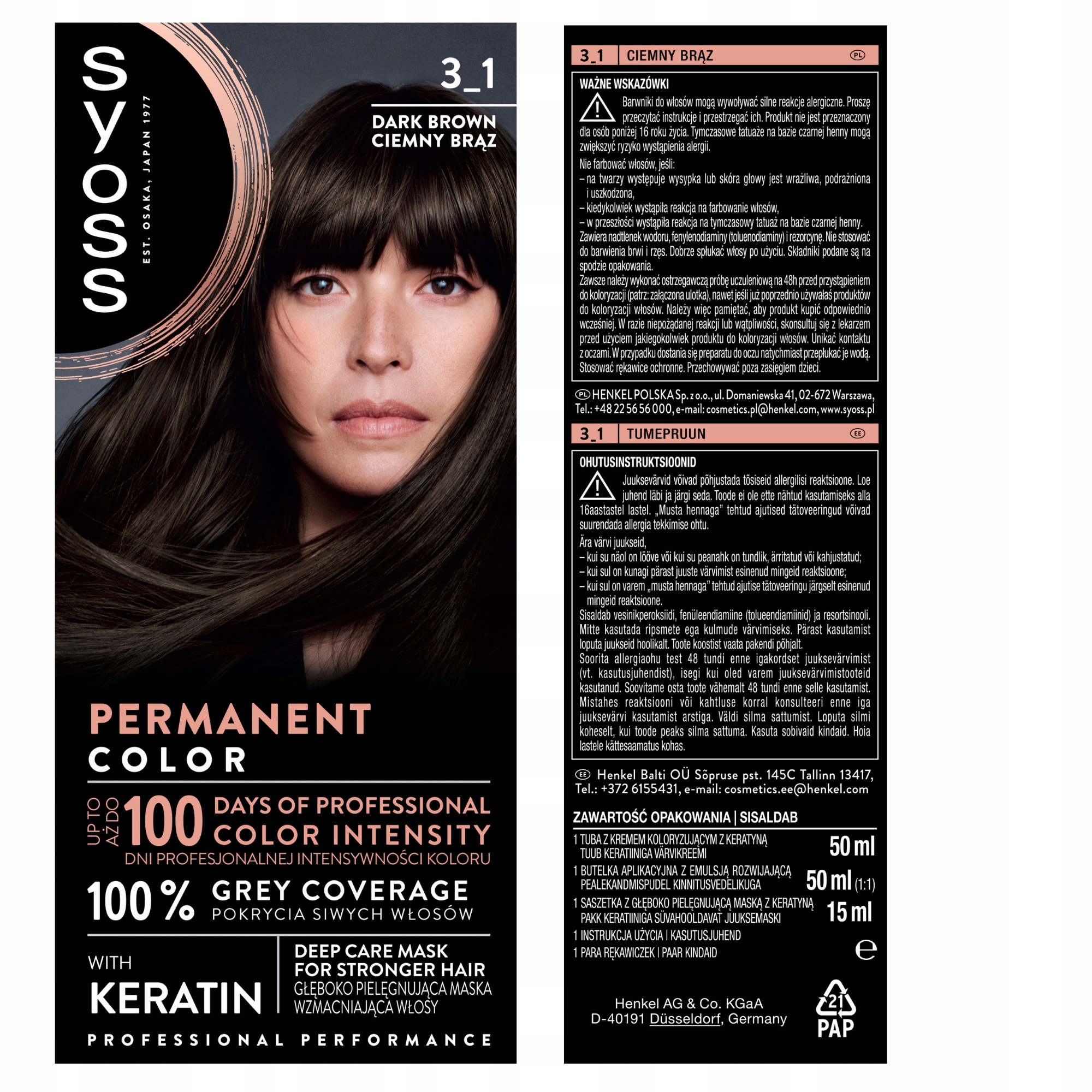 ➡ Syoss Dye Hair 3-1 темно-коричневый рекомендуется для волос от среднего коричневого до темно-коричневого, черного. H2>