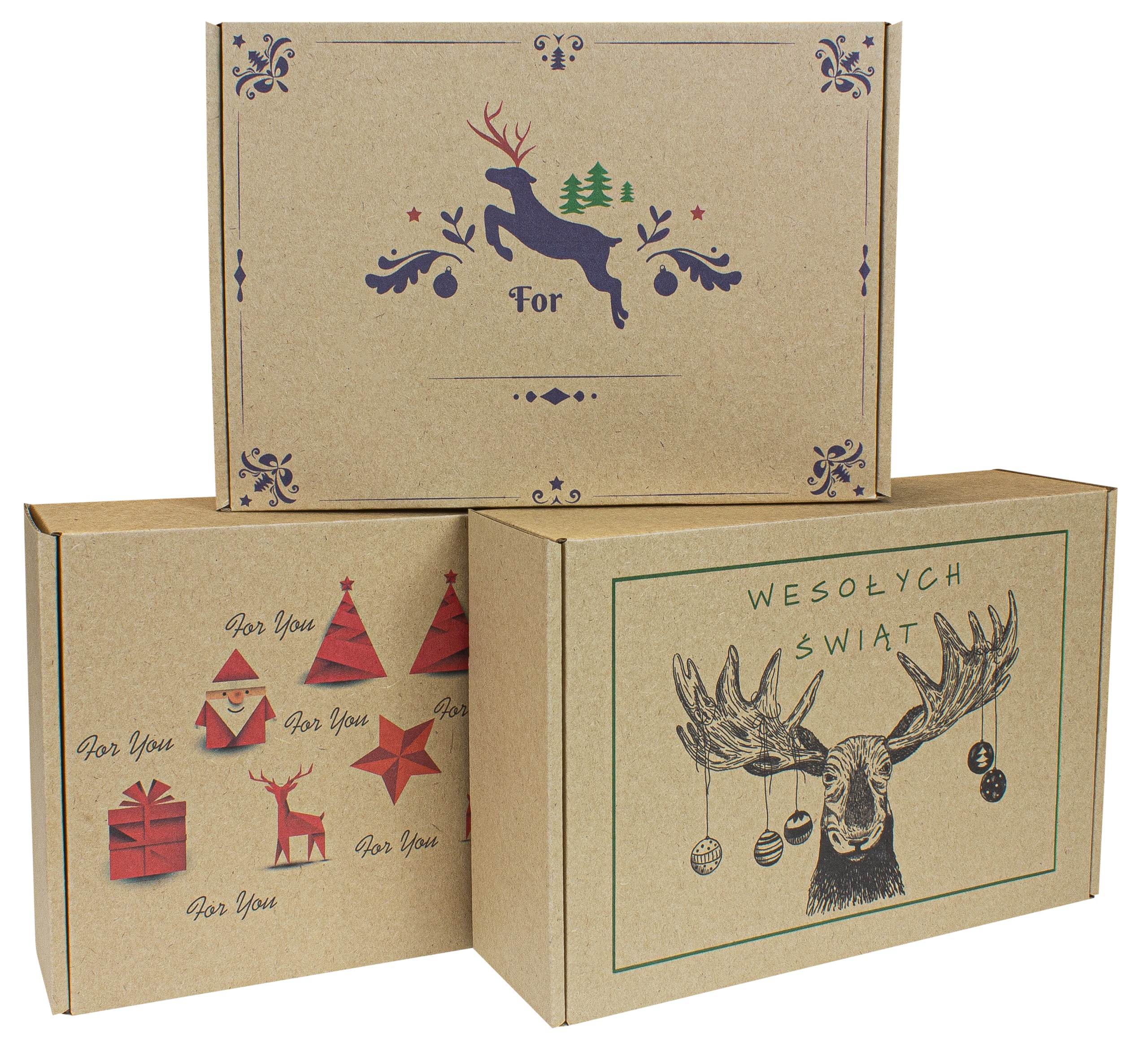 3x CHRISTMAS BOX Картонна коробка для подарунка екологічне РІЗДВО