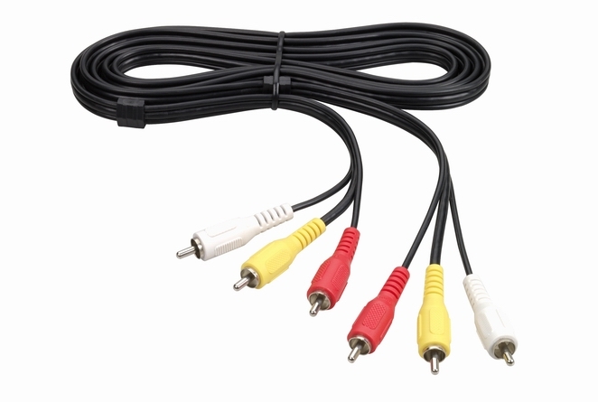 Кабель 3xCINCH - 3xCINCH (аудио левый, аудио правый, видео), длина 5 м. Кабель стандартного качества для аналоговых аудио-видео соединений, позволяющий подключать все типы аудио/видео компонентов, такие как проигрыватели и DVD-рекордеры, видеомагнитофоны, спутниковые декодеры, камеры и другие устройства с усилителем/ресивером для домашнего кинотеатра или телевизором. Кабель с формованными и разноцветными вилками (белый, красный, желтый).