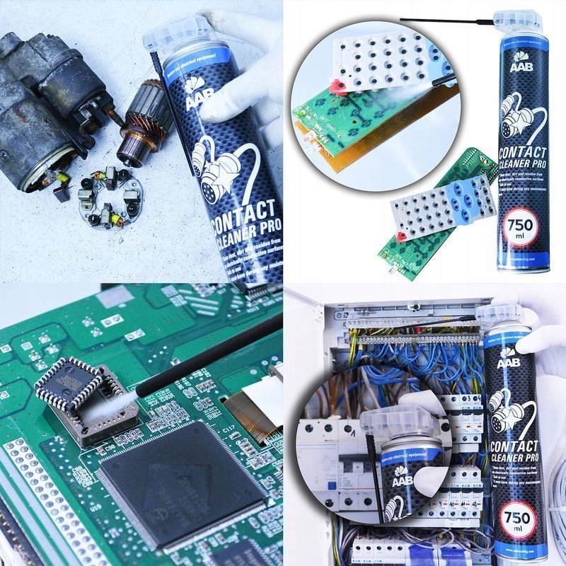 Ржавые контакты, грязь и жир на кабелях, клеммах и переключателях, видимая пыль, налет или черный налет на предохранителях, переключателях или пускателях? С AAB Contact Cleaner PRO не о чем беспокоиться, это отличный очиститель и консервант для электроники! Данный продукт в первую очередь оказывает антикоррозионное действие и защищает от окисления и отложения влаги на поверхности, на которой он применяется. Благодаря ему вы избавитесь от грязи, препятствующей проводимости электричества в вашем оборудовании!