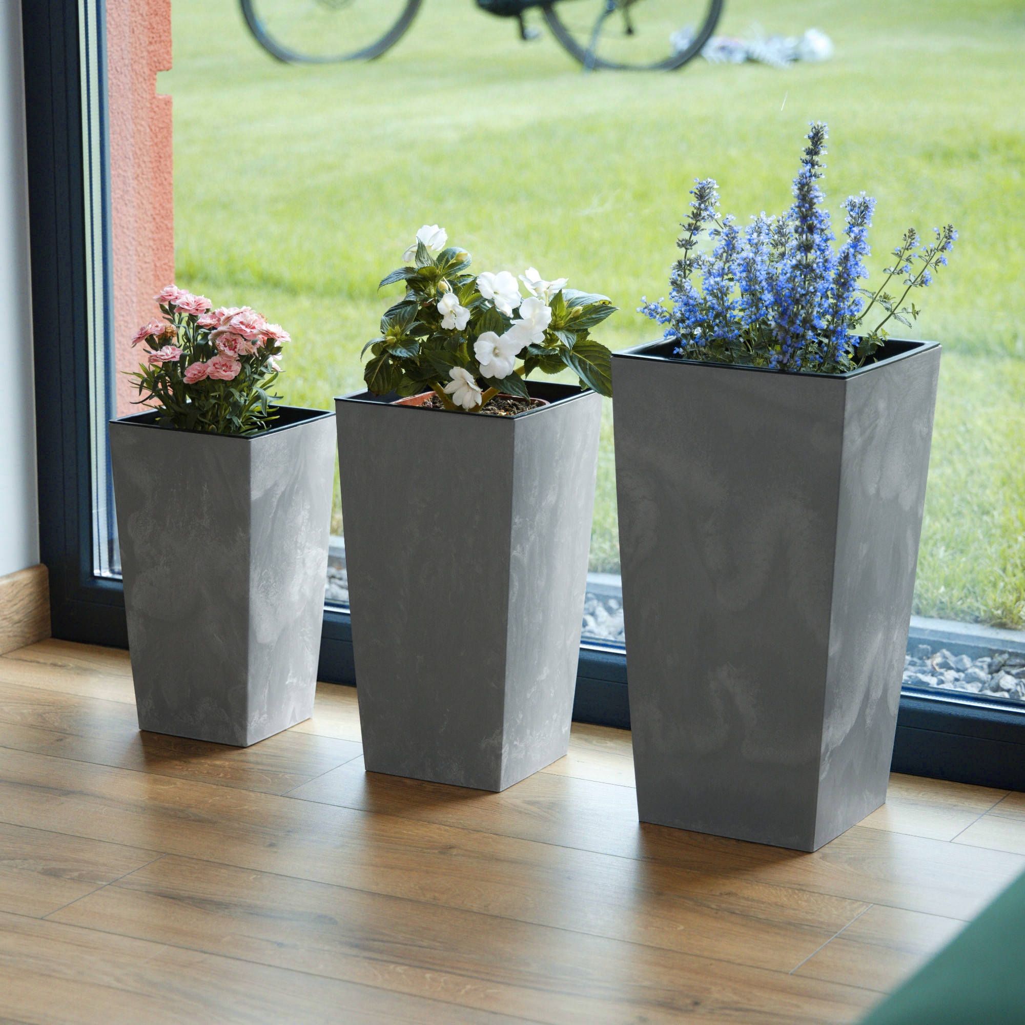 3x doniczka wysoka 20 26 32 cm wkład beton mat