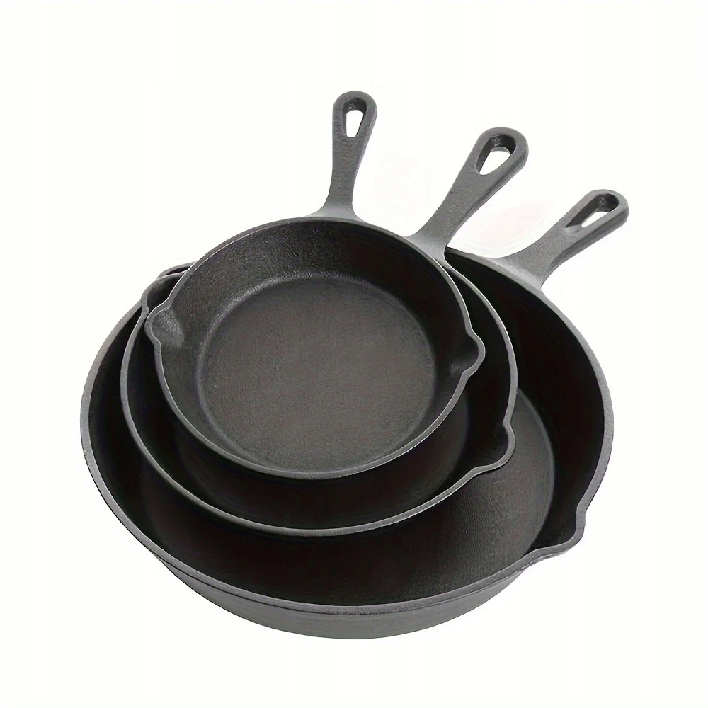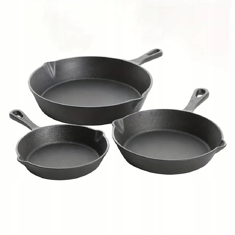 3x ГЛУБОКАЯ ЧУГУННАЯ СКОВОРОДА С АНТИПРИГАРНЫМ ПОКРЫТИЕМ МАССИВНАЯ СКОВОРОДА ДЛЯ ГРИЛЯ НАБОР ИЗ 3 ПРЕДМЕТОВ