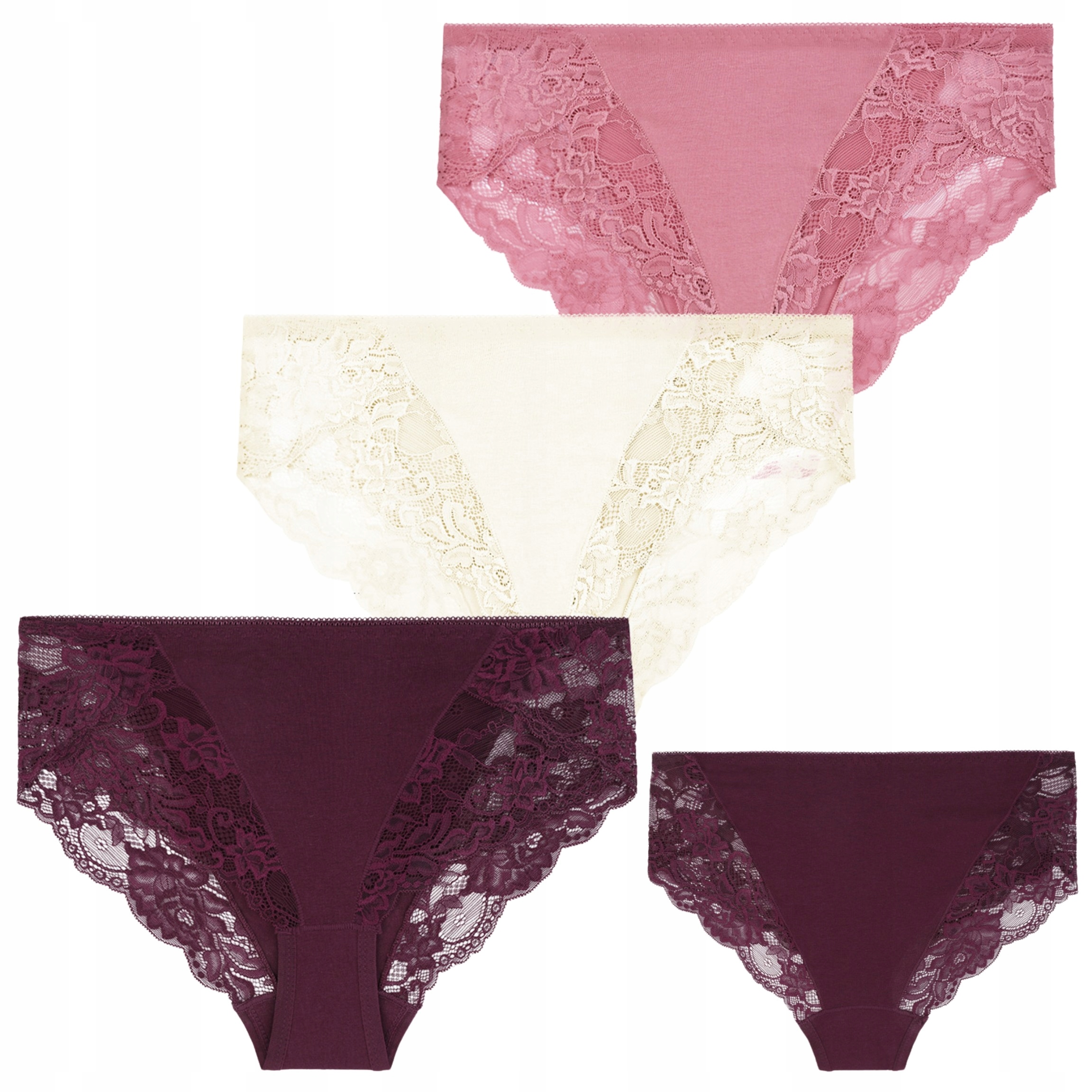 ТРУСИКИ ЖЕНСКИЕ КРУЖЕВНЫЕ, ЭЛЕГАНТНЫЕ КРУЖЕВА MORAJ, 3 ПАРЫ ХЛОПКА L