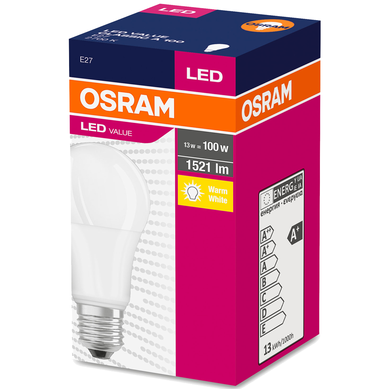 LED VALUE 13W от известной и признанной в светотехнической отрасли компании OSRAM, с цоколем E27 и 13W б>мощность (эквивалент классической лампы 100Вт) представляет собой высококачественный светодиодный источник света.