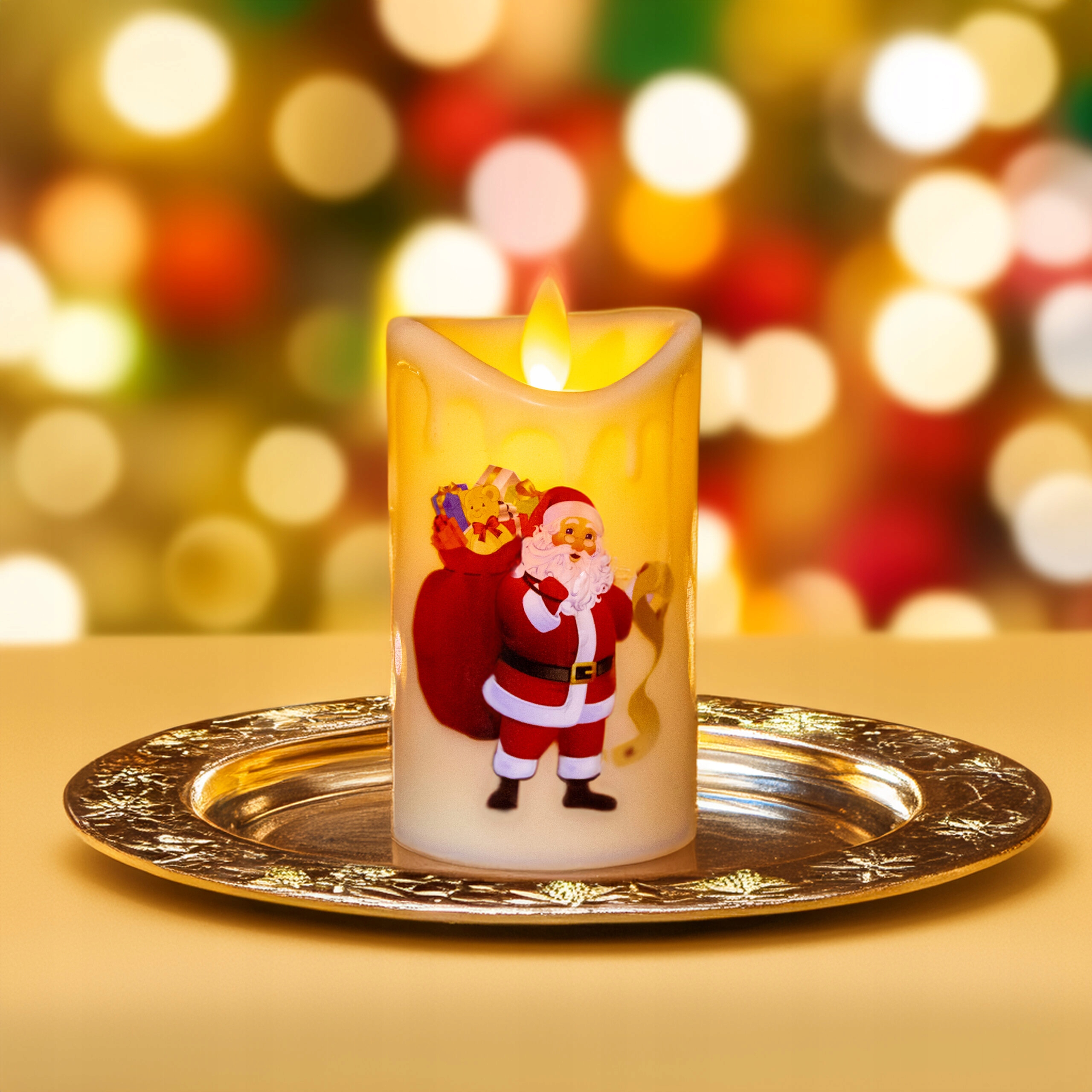 ⭕✅ Светодиодная свеча имитирует настоящую восковую свечу, дополнительно украшенную рождественскими иллюстрациями.