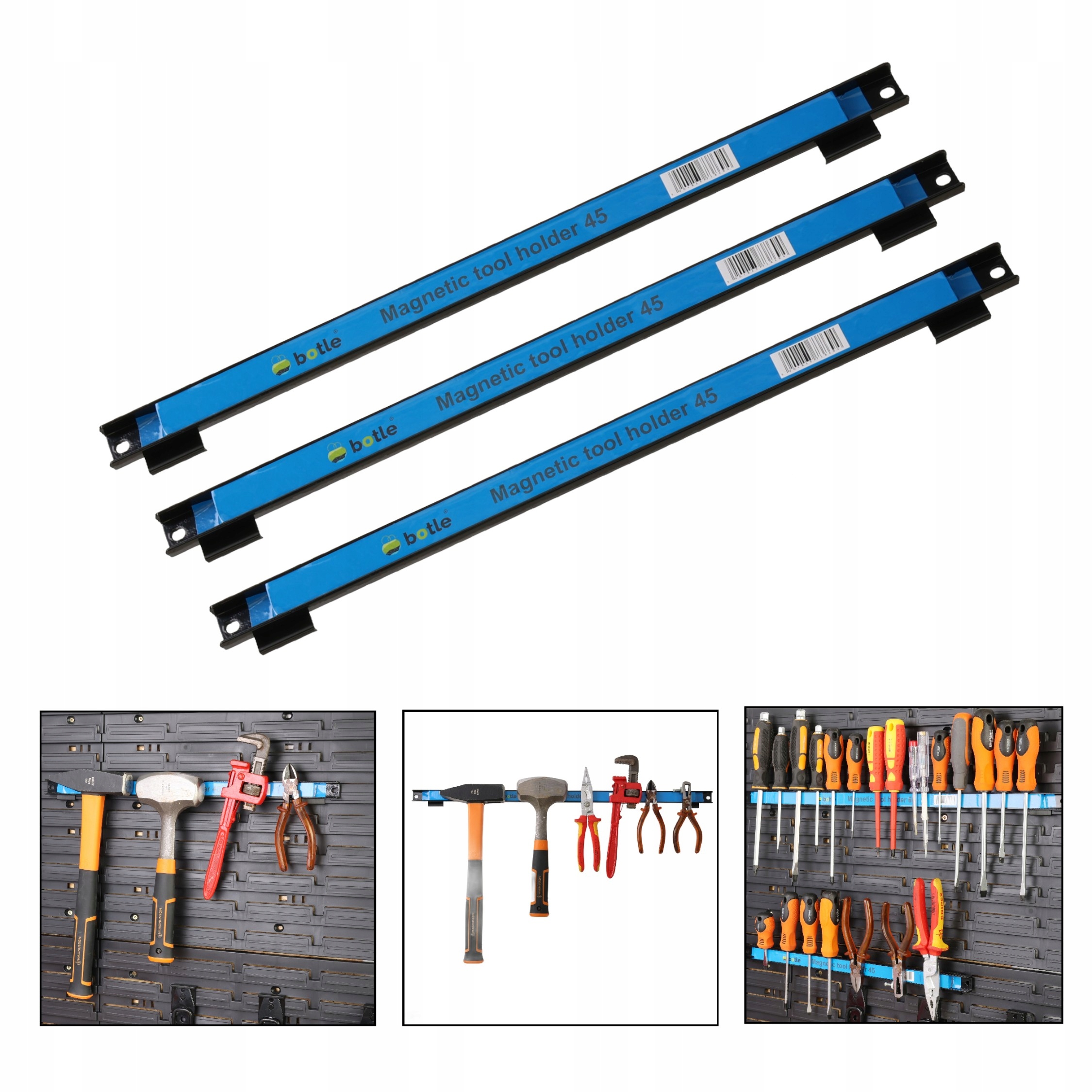 набор из 3 магнитных полос с длиной 45 см, посвященной семинарам Botle, является практическим и чрезвычайно функциональным решением, которое облегчает организацию инструментов в каждом семинаре, гараже или техническом семинаре. Благодаря специально разработанной системе сборки, полоска идеально подходит с перфорированными досками мастерской Botle , обеспечивая быструю и стабильную установку без необходимости бурения или использования дополнительных элементов фиксации. обеспечивает простое, безопасное и удобное хранение самых используемых инструментов у вас под рукой - без необходимости искать их в ящиках или коробках.