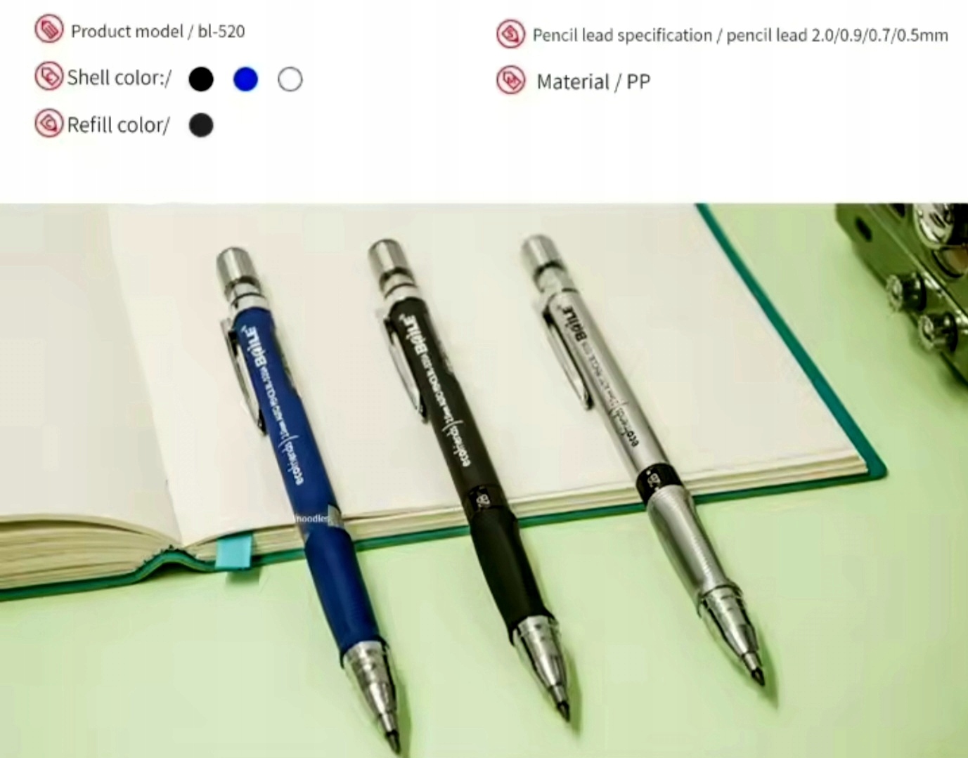 - Механический карандаш позволяет точно писать без необходимости снимать грифель во время работы письмо.