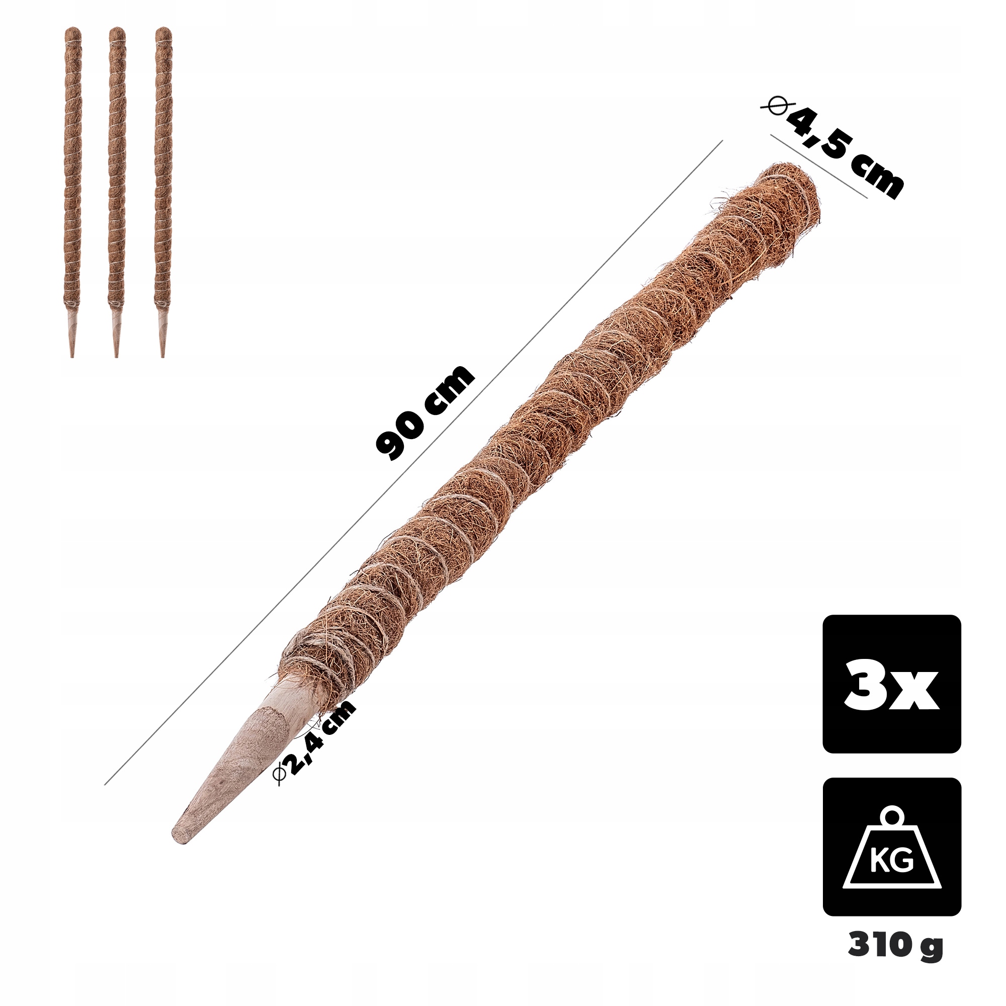 3x цветочные растения поддерживают 90 см кокосовой комок 45 -миллиметровый полюсный монстр h1>