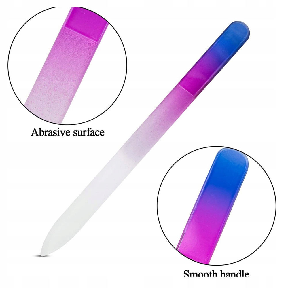 Напильник изготовлен из закаленного стекла с технологией двусторонней гравировки, обеспечивающей долговечность и стойкость к истиранию. Каждый файл упакован в красочный футляр, защищающий его от трещин и царапин при транспортировке и повседневном использовании. Идеально подходит для придания формы и полировки натуральных, гелевых и акриловых ногтей, делая их гладкими и здоровыми.