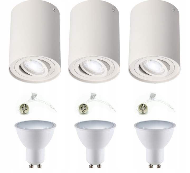 Набор из 3 шт. - круглый потолочный светильник GU10 IP20, белый + светодиодная лампа GU10 5,5 Вт 3000К / 4000К / 6500К