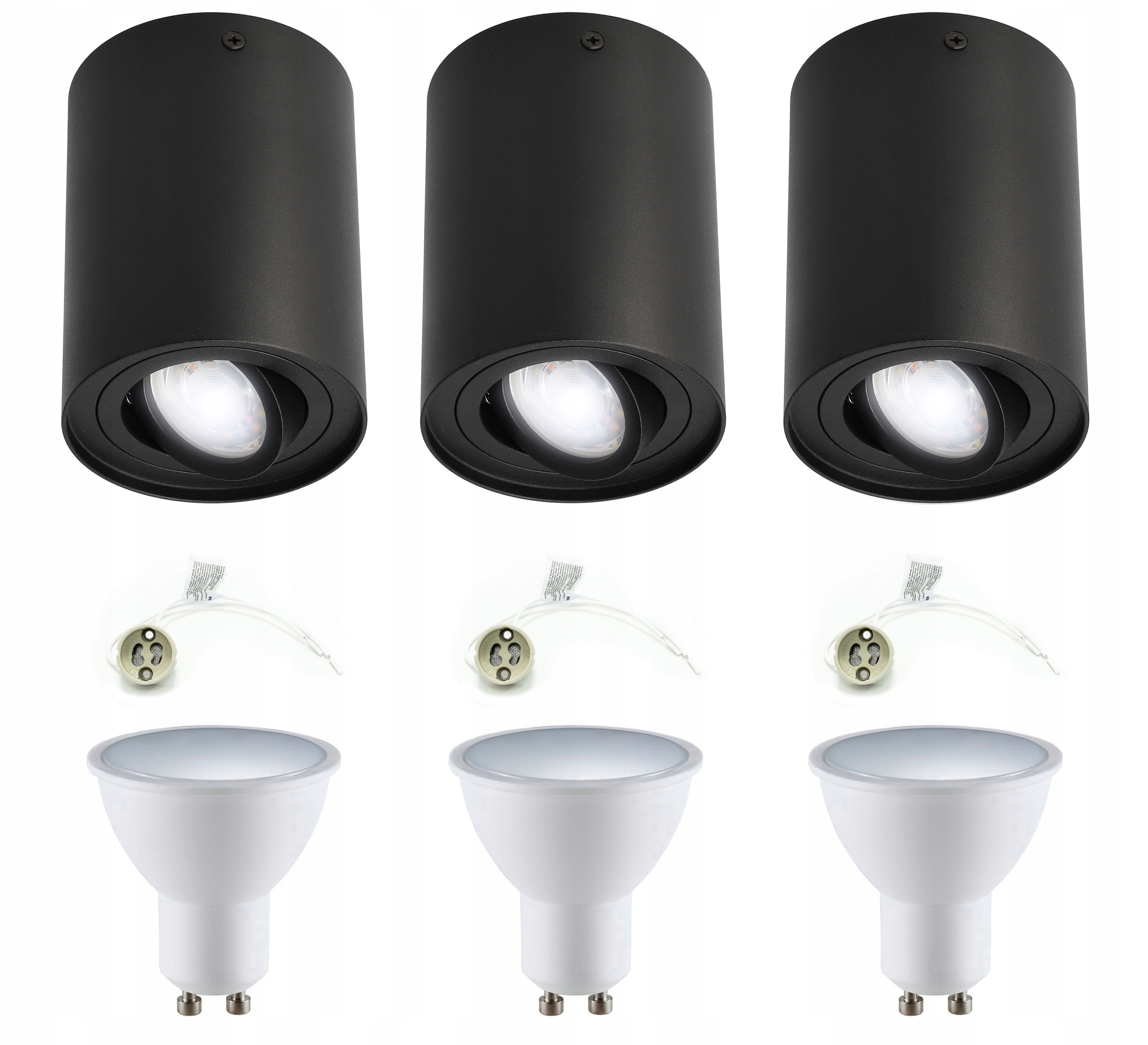 Набор из 3 шт. - точечный светильник круглый потолочный GU10 IP20, черный + светодиодная лампа GU10 5,5 Вт 3000К / 4000К / 6500К