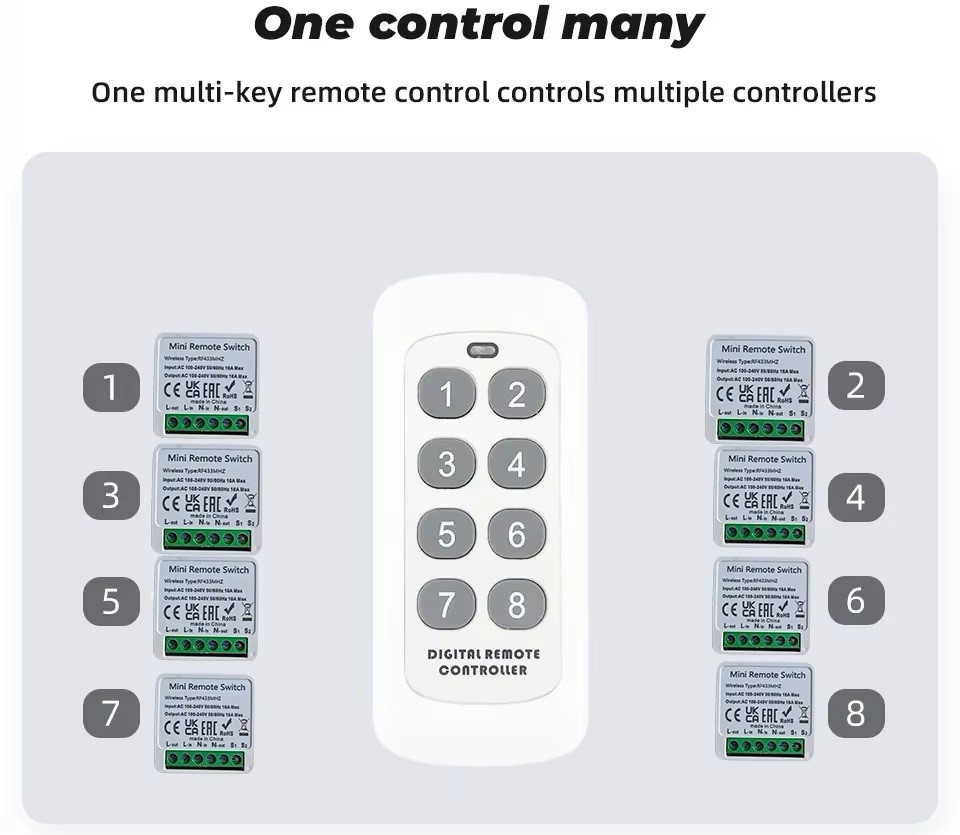✔️Сочетается с любым пультом дистанционного управления с фиксированным кодом 433 МГц