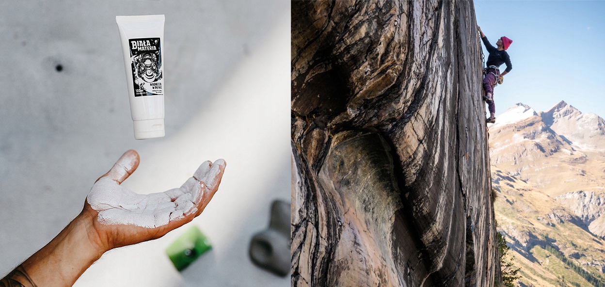 Отличные гигроскопические свойства — отличительная черта Белой Материи. Независимо от того, какой вид спорта вы выберете, задача нашего мела одна: сохранить вашу кожу оптимально сухой и крепкий хват – как на скалистых кантах, так и на перекладине или перекладине.