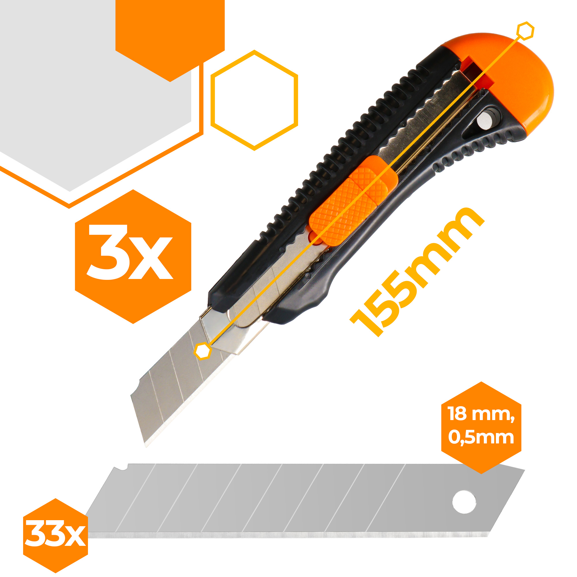 Нож для обоев стандартный 3 шт. с сегментными лопастями 18 мм 33 шт.