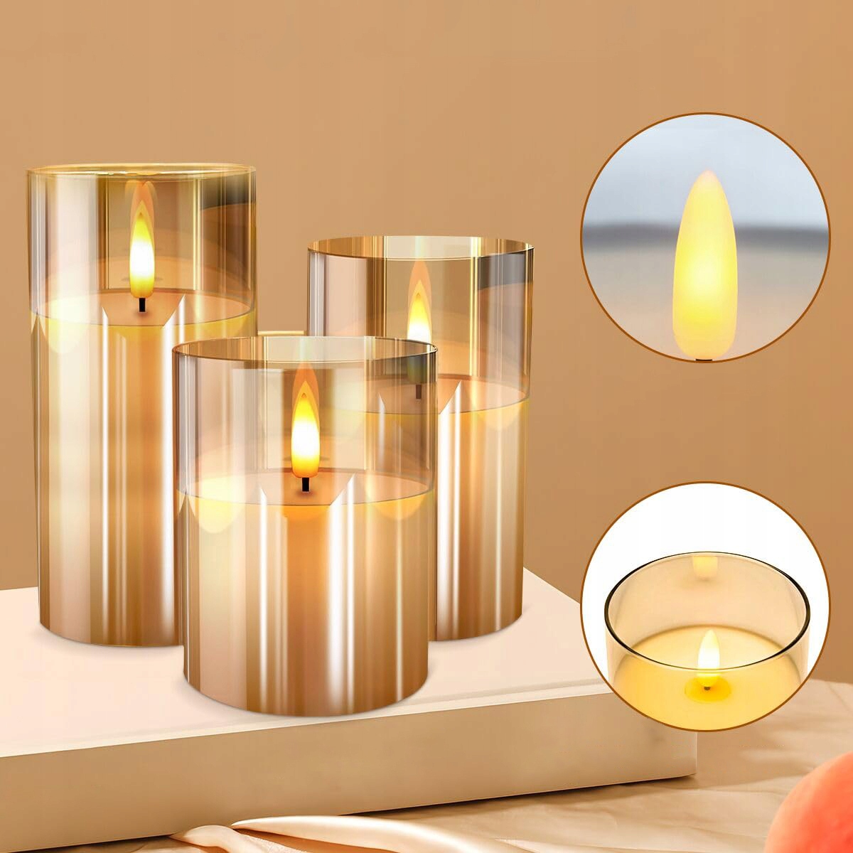 3X СВЕЧИ ДЕКОРАТИВНЫЕ СВЕЧИ СВЕТОДИОДНЫЕ ПОЗОЛОЧЕННОЕ СТЕКЛО ДЕКОРАТИВНЫЕ ДЕКОРАТИВНЫЕ РОЖДЕСТВЕНСКИЕ СВЕЧИ