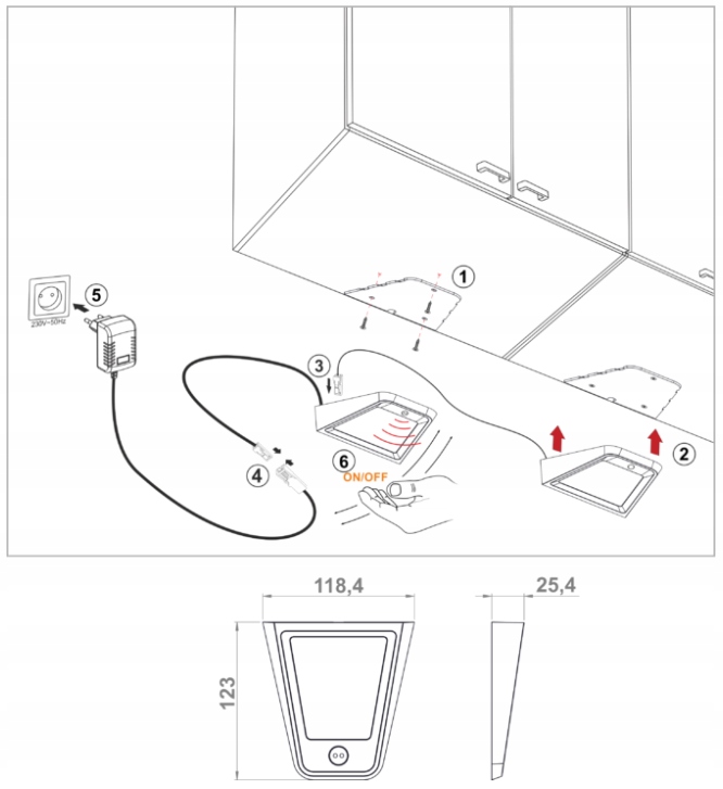 - Чтобы включить лампу, достаточно провести рукой под ней (см. рисунок ниже)< /li>