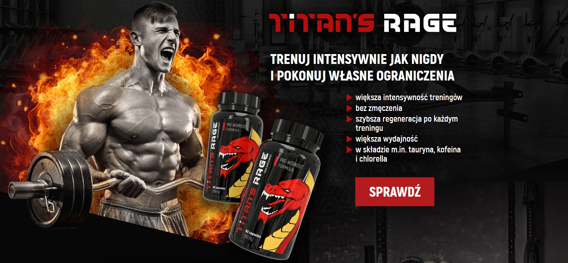 Titan's Rage — это предтренировочная добавка, разработанная в сотрудничестве с бодибилдерами и диетологами. Это формула, которая поможет вам тренироваться сильнее и эффективнее. Благодаря этому вы нарастите мышцы, которые привлекут внимание каждой девушки, но прежде всего станут доказательством вашей работы над собой и преодоления последующих барьеров своего тела!