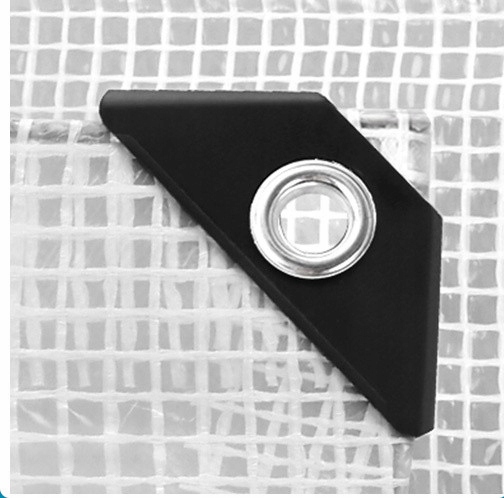 - люверсы для крепления: сталь через каждые 100-120 см