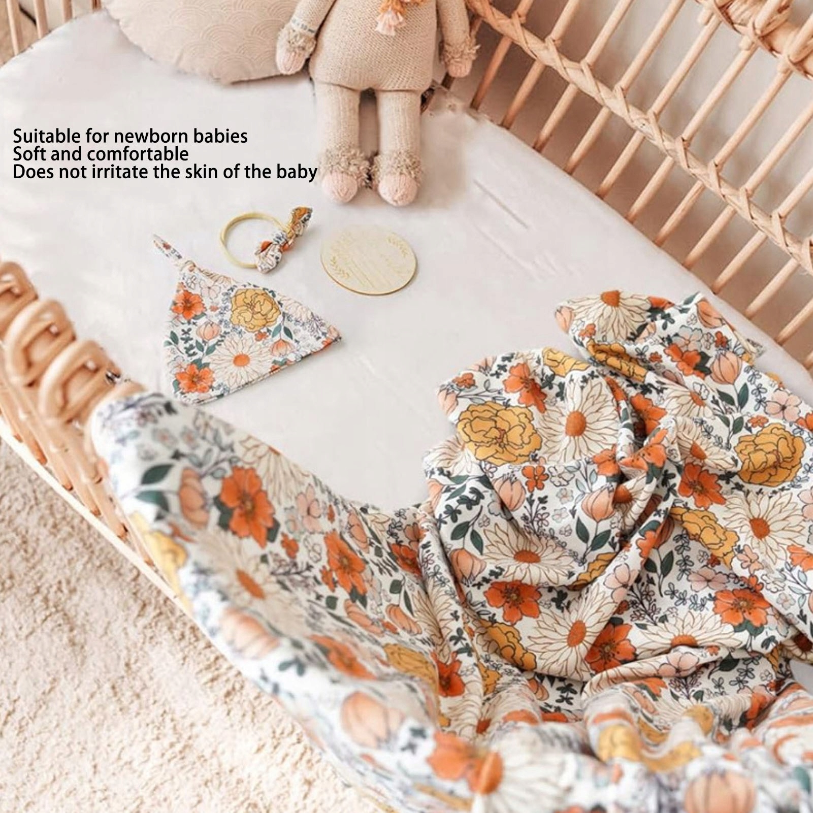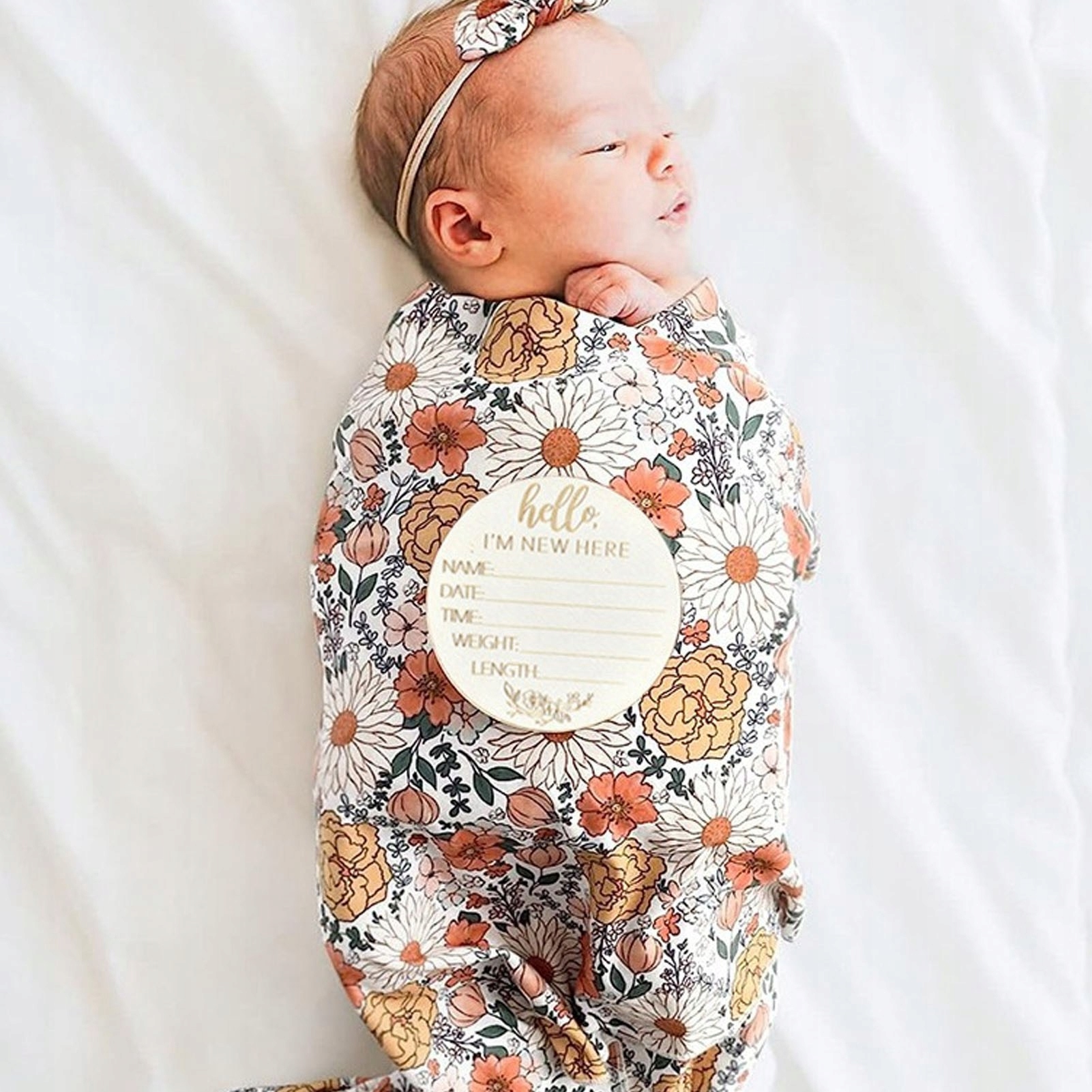 4. Набор из четырех элементов: набор новорожденных цветочных принтов содержит упаковку полотенца, шляпу, полосу для волос и месяц для различных потребностей.