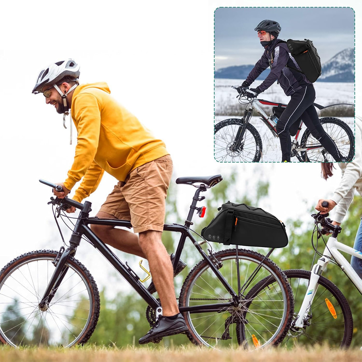 ▶ ️ 【Многофункциональное и универсальное использование единого). Задний багажник велосипеда оснащен съемным и регулируемым плечевым ремнем, так что вы можете легко взять его в любом месте. Независимо от того, отправляетесь ли вы кататься на открытом воздухе или использовать его каждый день, это, безусловно, будет вашим идеальным компаньоном!