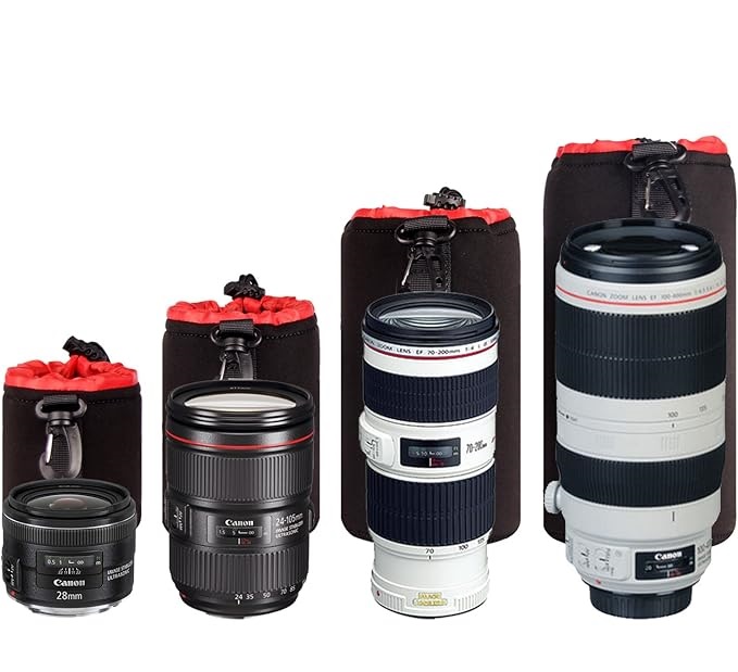 - Сопоставление идеального размера - набор включает в себя 4 размера для ваших нужд. Небольшая, средняя, большая и очень большая сумка для цифровой линзы SLR или других ценных предметов; Безопасно храните линзы всех размеров в этой супер мягкой фланелевой сумке
