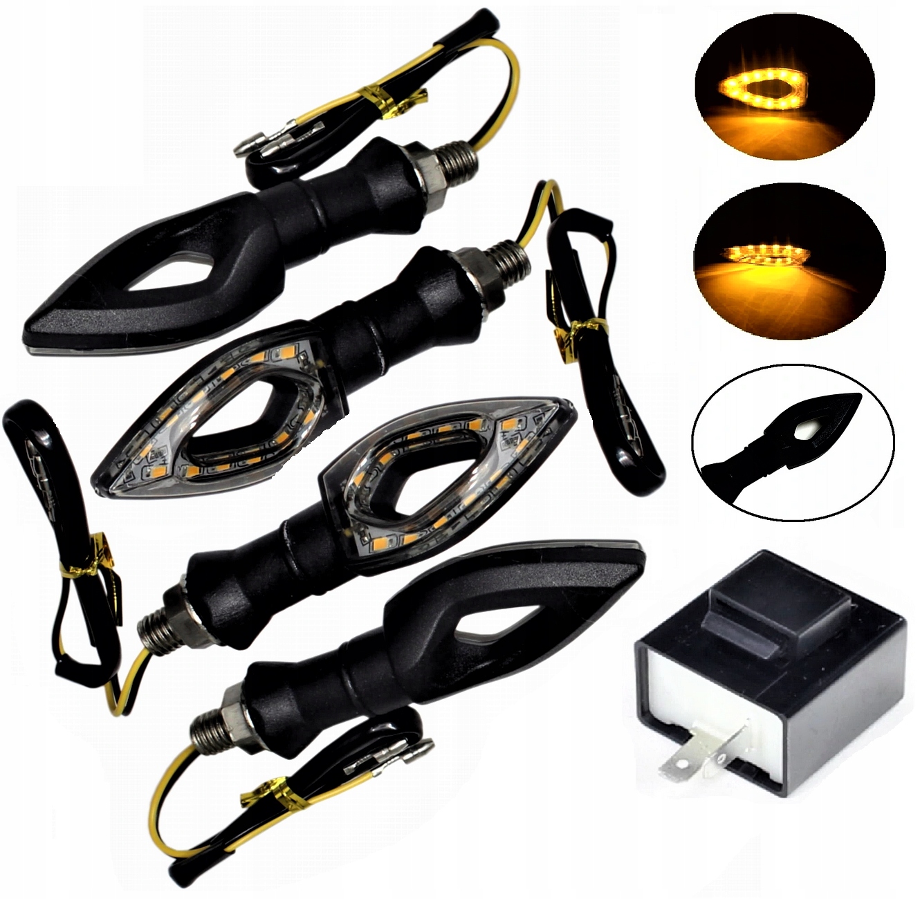 Индикаторы направления очень хорошо сделаны в новейших светодиодных технологиях в соответствии с заводским стандартом. Индикаторы направления имеют гибкий резиновый монтаж, поэтому они не ломаются, когда самосвал или при попадании на препятствие. Они связаны с двумя проводами в виде круглых разъемов. Привлекательный внешний вид пустой стрелки, пустой в середине прозрачной стрелы, дает удивительный светлый эффект и очень хорошую видимость для других общественных дорожных пользователей. Индикаторы направления имеют одобрение дороги на слайде, поэтому они полностью допущены к движению. Благодаря проверенному, высококачественному, они обеспечивают долгую и не проблема.