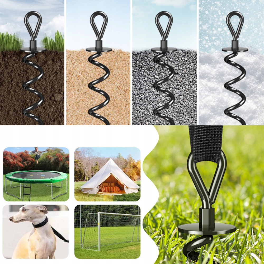 Наши якоря почвы изготовлены из высококачественной сплавной стали, которая является более сильной и прочной, чем алюминий и пластиковые якоря. Спиральные обмотки увеличивают адгезию и обеспечивают максимальную сцепление. Один конец металлического штормового якоря обернута в резине, чтобы повысить безопасность