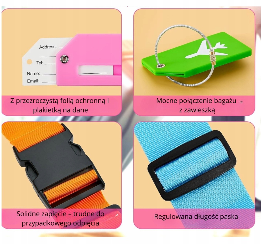4x багажный ремень для чемоданов, закрепляющих крепление багажа + 4 метки h1>