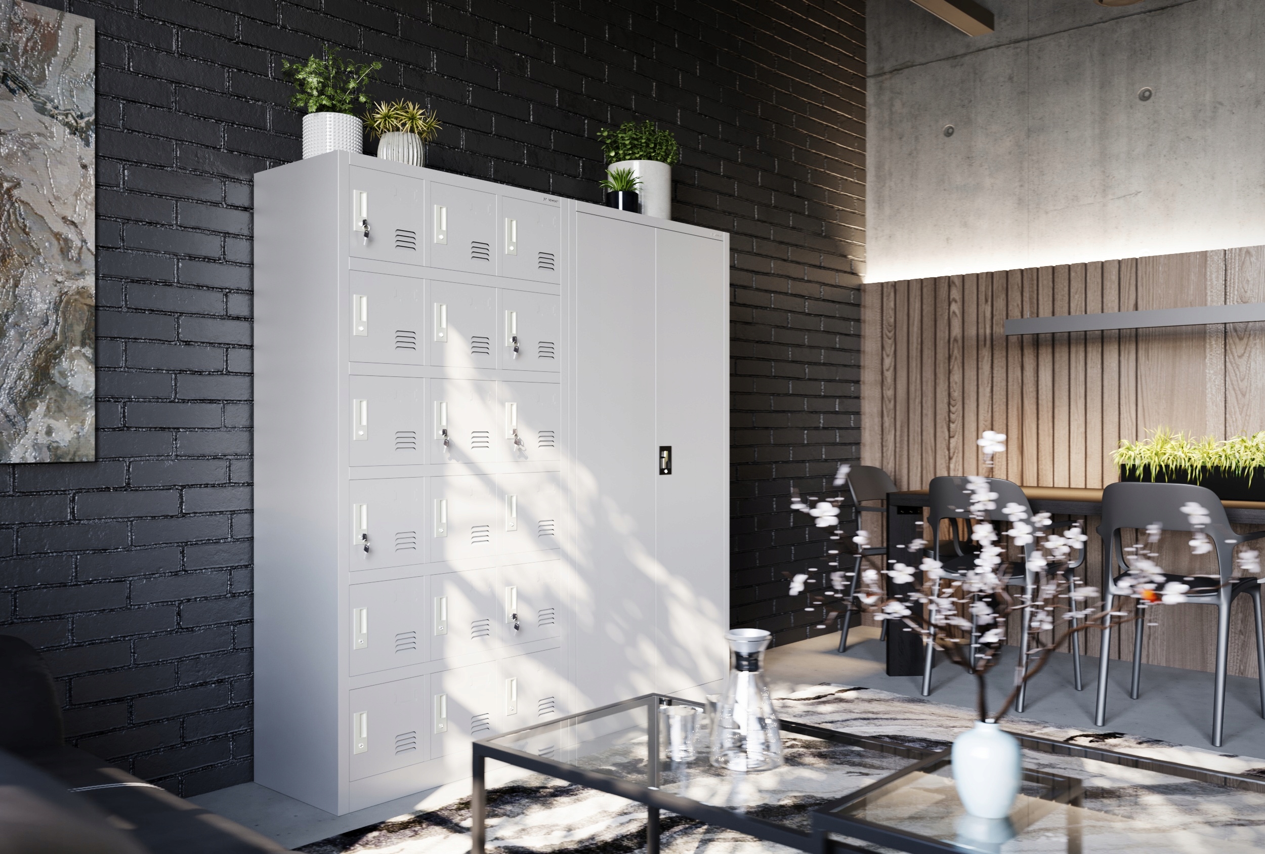 Металлический гардероб, закрытый январь H, характеризуется большой универсальностью применений. Он не только отлично работает как офисная мебель, но и может использоваться для медицинского или промышленного интерьера.