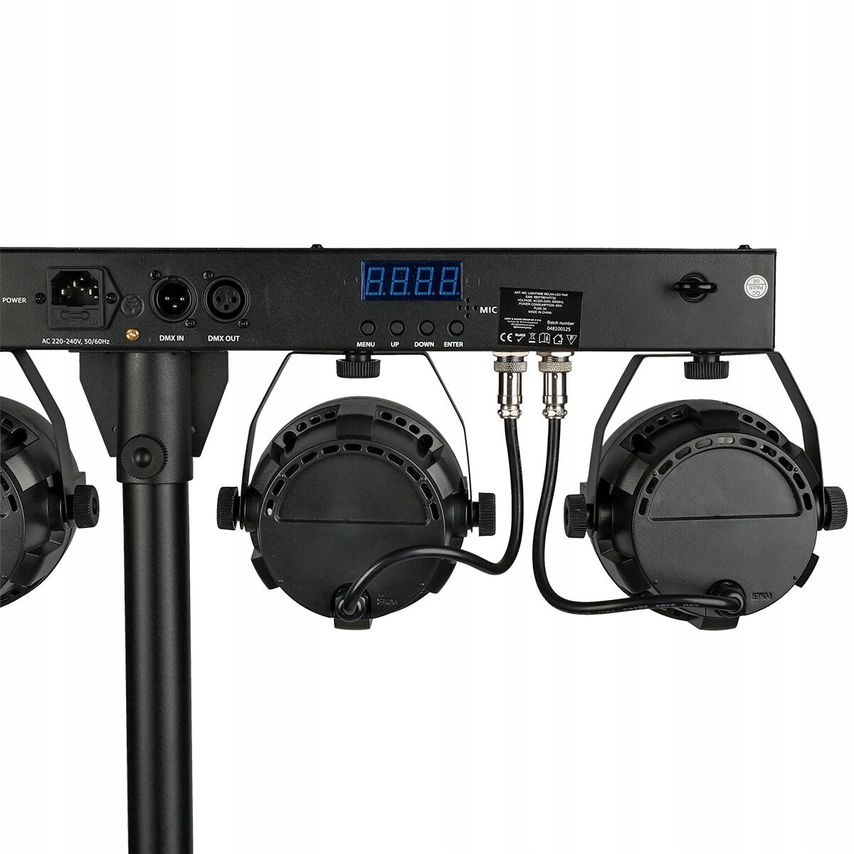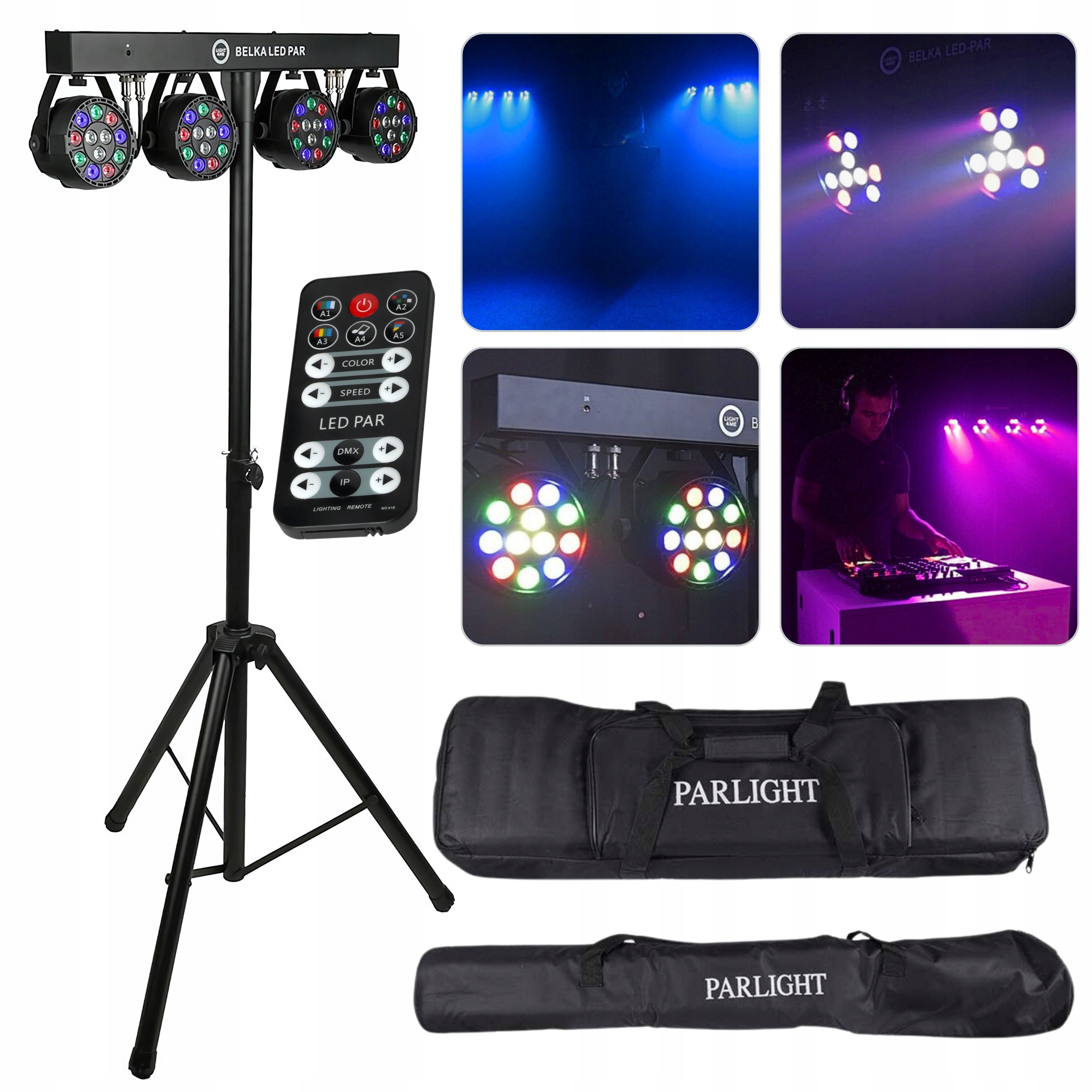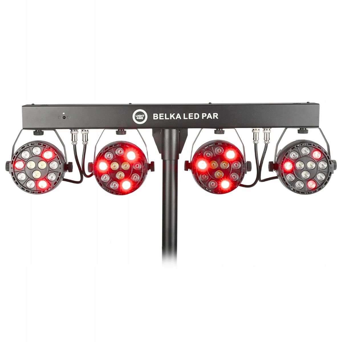 light4me светодиодный лучевой балки Par -это полный набор освещения , который включает в себя полоску с креплением, четырехзвешенные отражатели , оборудованные 12 -eear -lod -LEDS Work -Leds в цветовых палатах. (Красный, зеленый, синий, белый), твердый штатив , Pilot и две крышки (для штатива и луча).