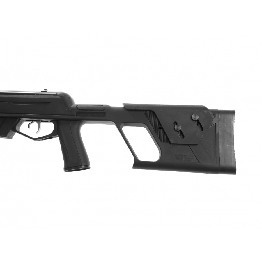 Тактический стиль подчеркивается футуристическим цевьем, прикладом с регулируемой щекой,