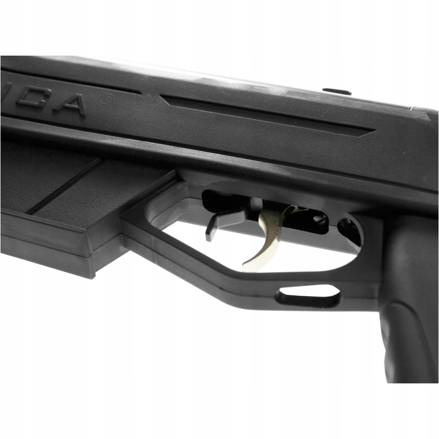 При срабатывании спускового крючка при нажатии сжатый газ движется, движется поршень, который реагирует на сжатие воздуха и выстрел выстрела.