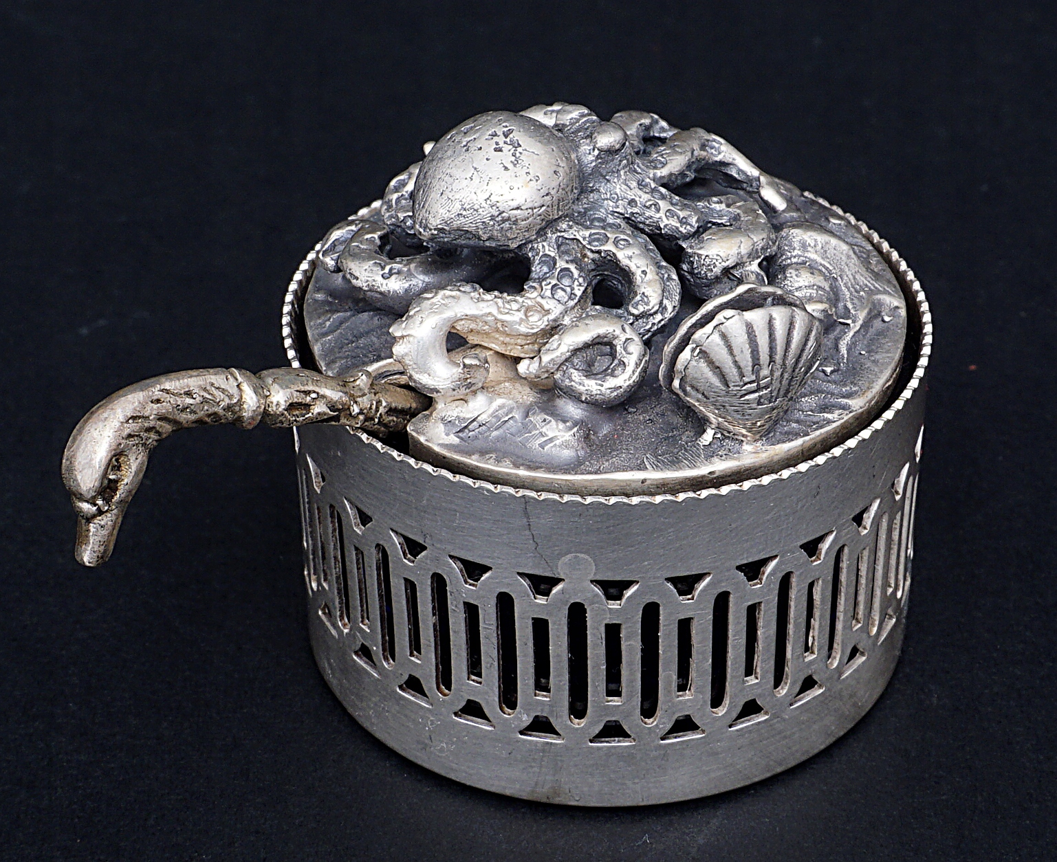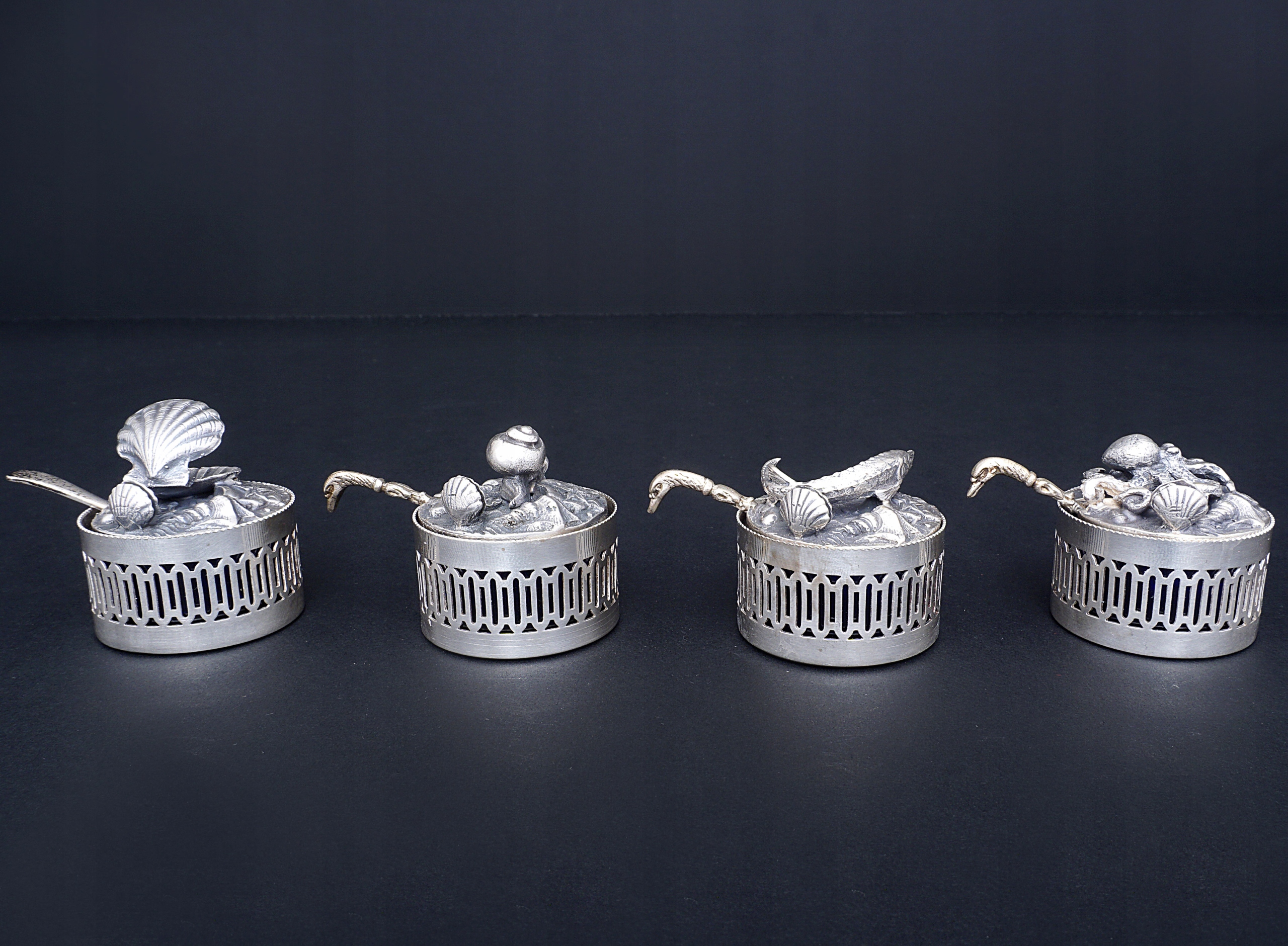 На каждом солевом шейкере есть фигурки морских животных - улитка, рыба, осьминог и мидия.