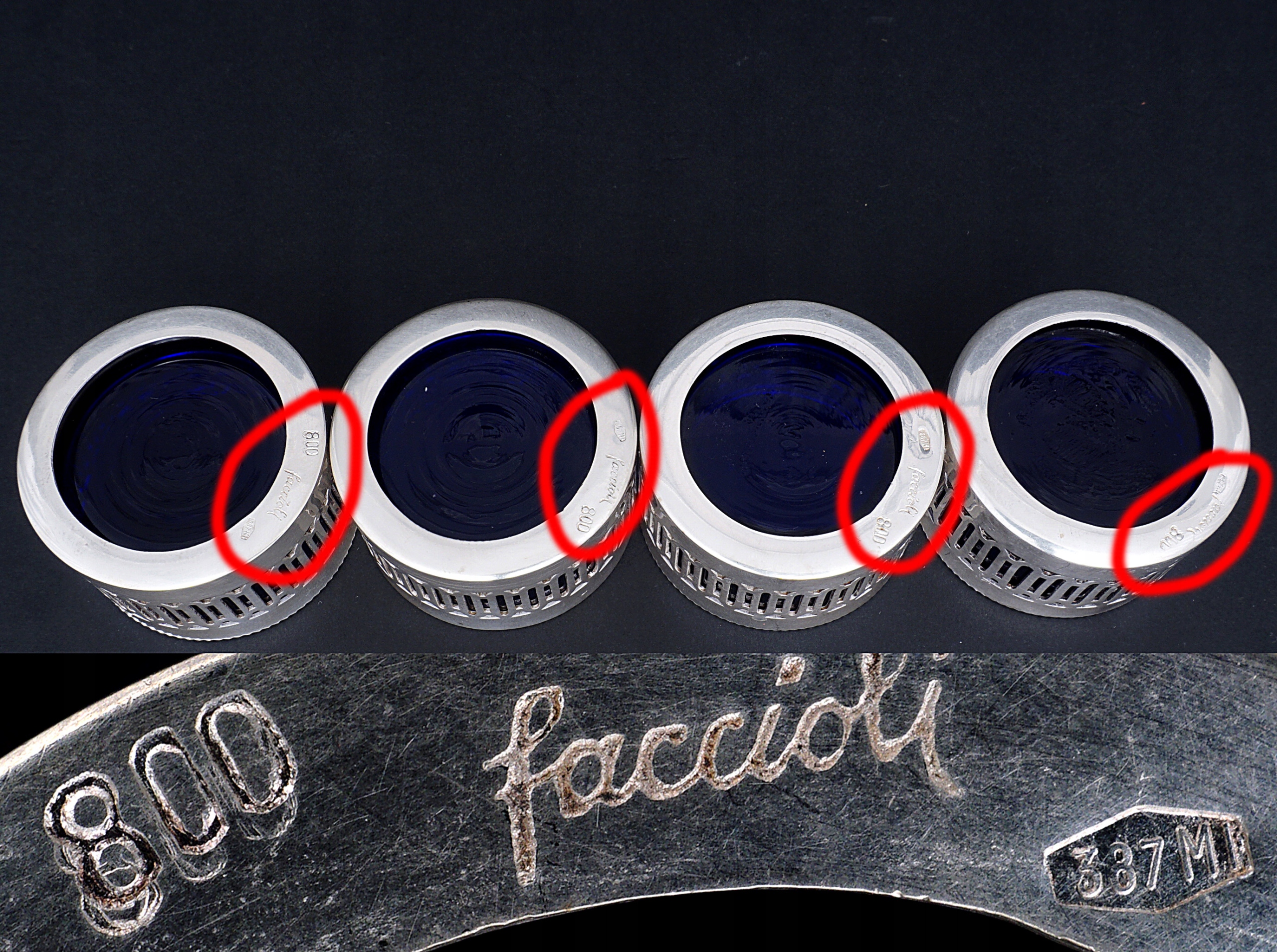 изготовлены из 800/1000 серебра. Внутри есть стекло, кобальтовые вставки.