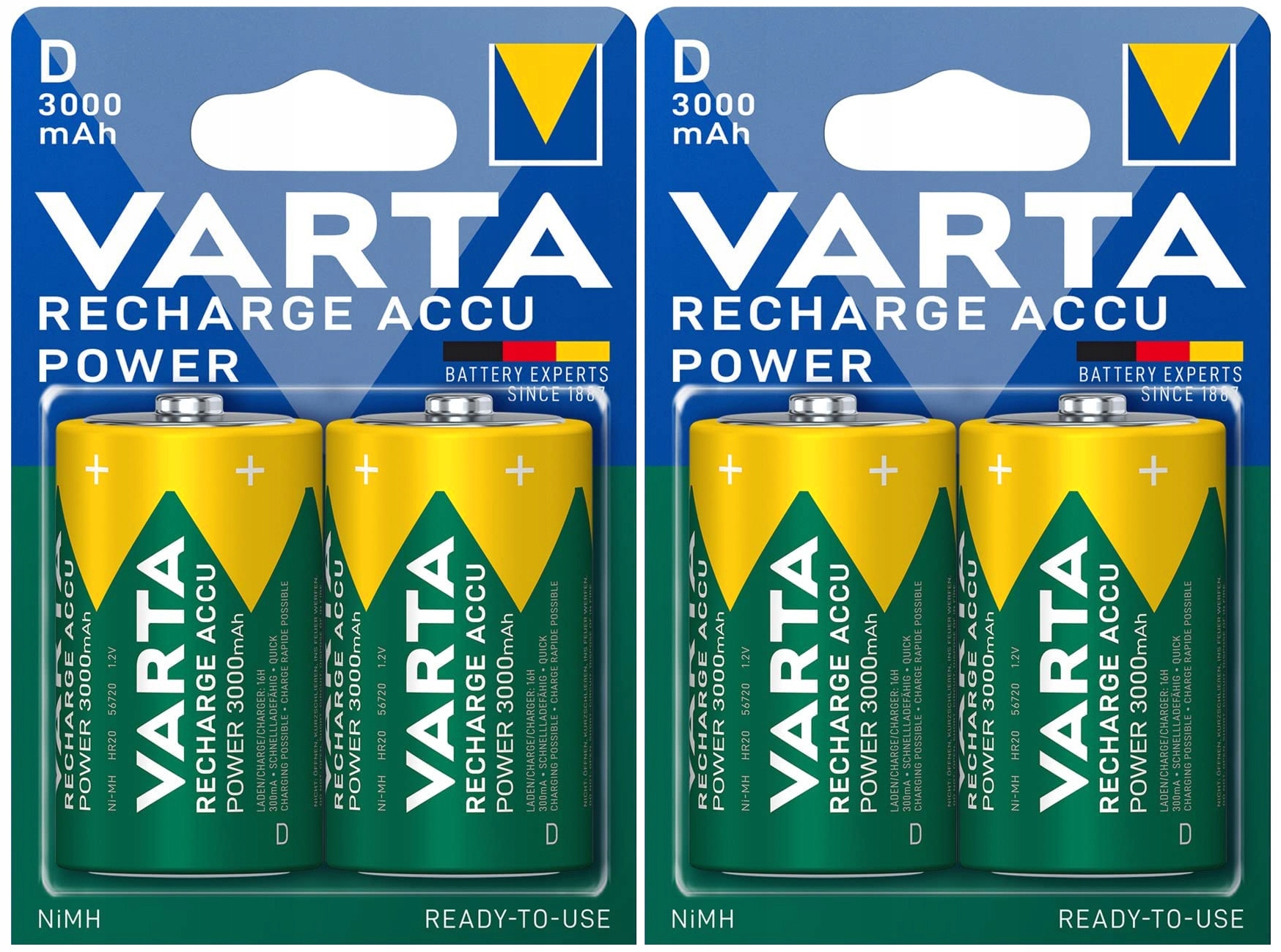 Инновационные аккумуляторы Varta Ready2Use R20/D (модель 56720), емкость - 3000мАч.