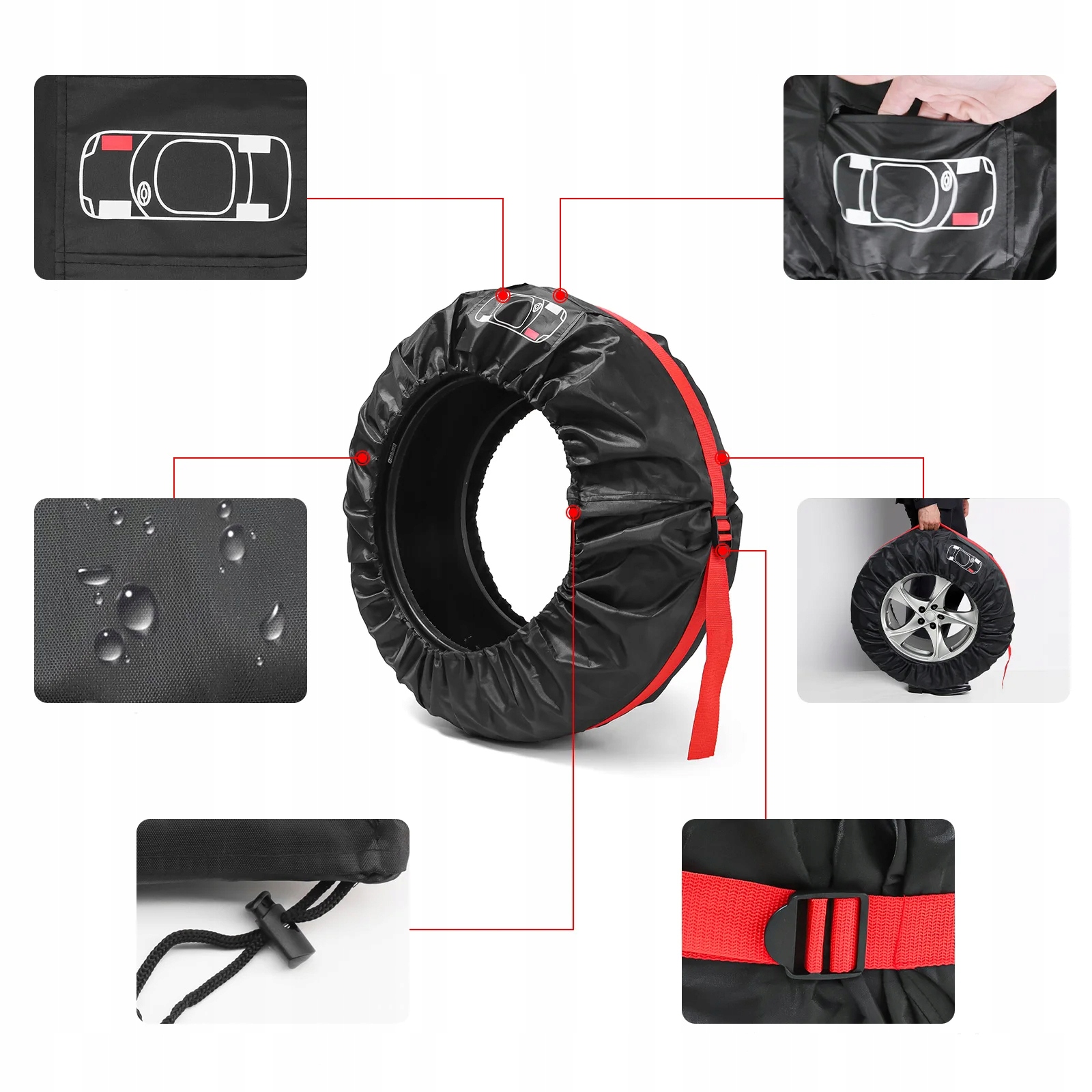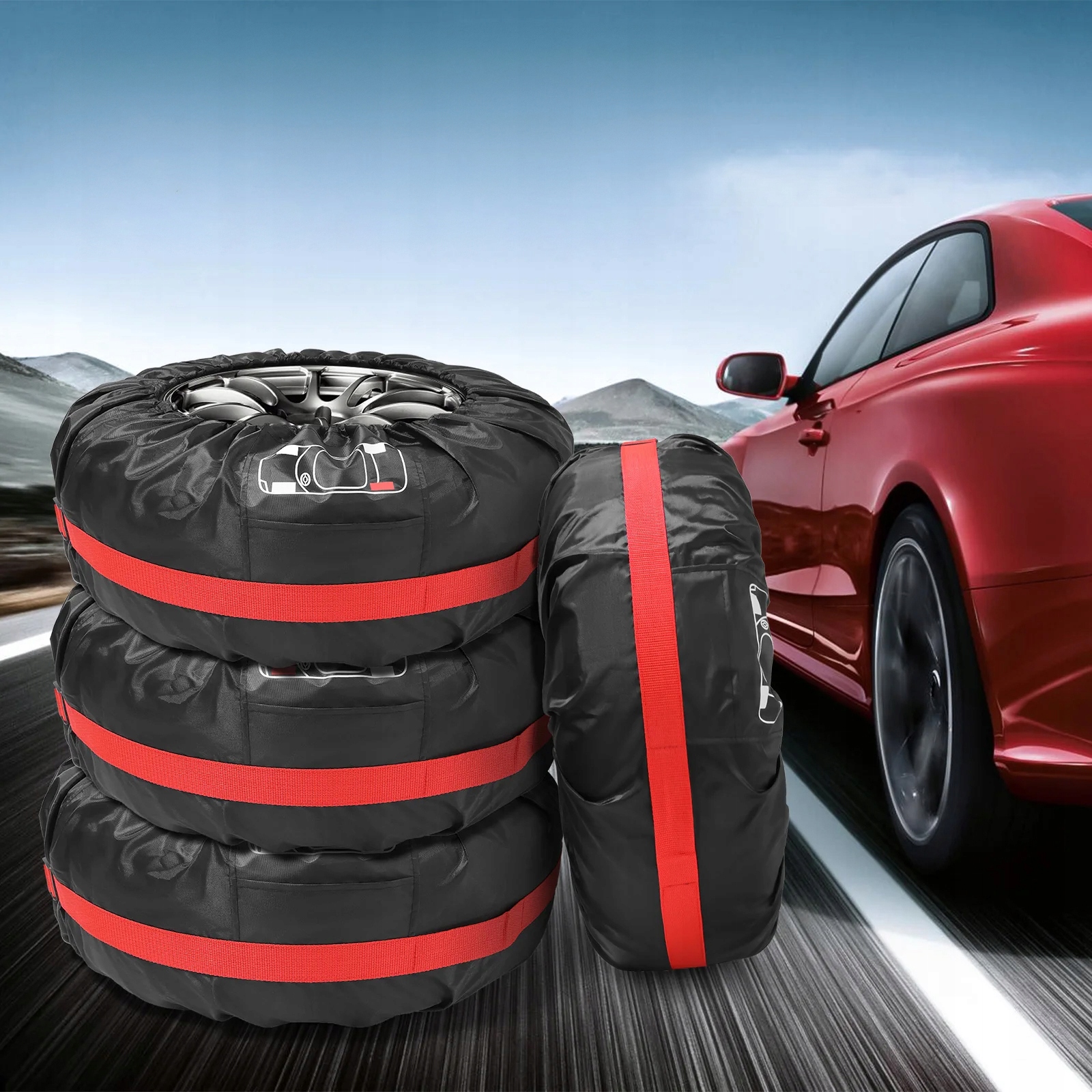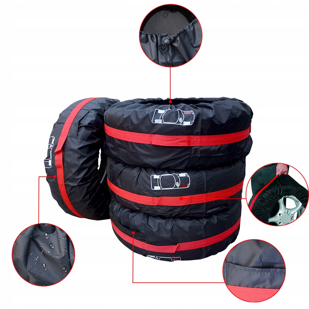 Каждый чехол оснащен прочными ремнями и удобной ручкой, облегчающей транспортировку шин.