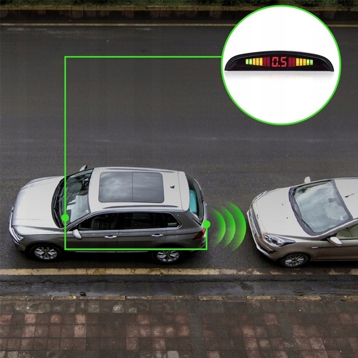Комплект содержит целых четыре датчика, которые можно разместить в любой конфигурации спереди или сзади автомобиля, что повышает безопасность при движении вперед и при движении задним ходом. Датчики, работающие с помощью ультразвуковых датчиков, измеряют точку и сигнализируют о ее приближении, вызывая тревогу звуковым сигналом, а также свечением цветных линий на ЖК-дисплее.