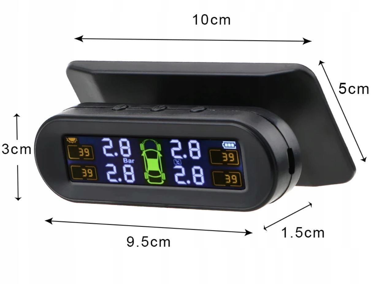 Управлениеz легко читаемыйЖК-дисплей питается от солнечной энергии, а четыре беспроводных датчика TPMS оснащены независимыми батареями (4 батареи CR1632H входит в комплект).