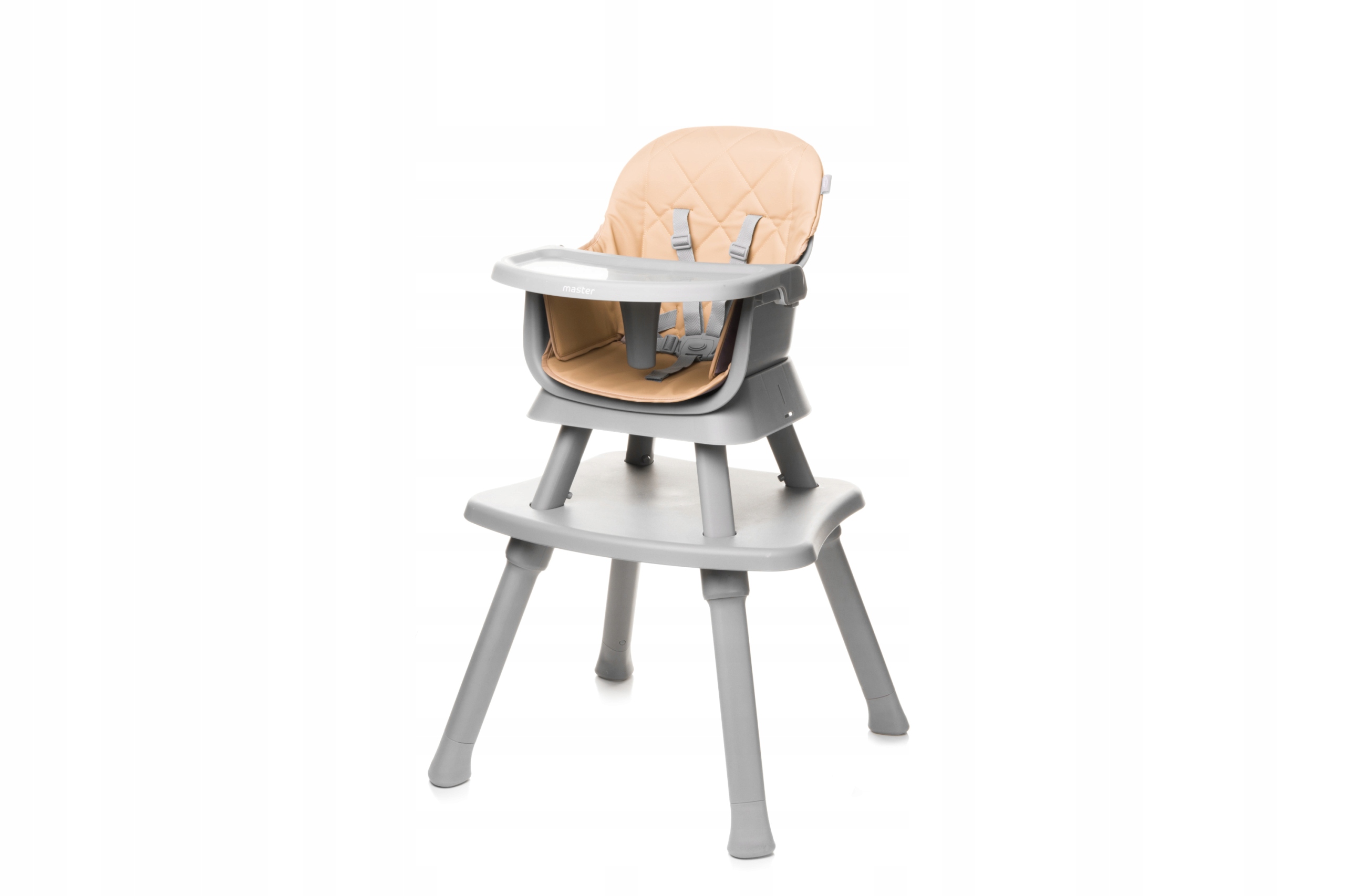 Стульчик для кормления Master 6 в 1 — это сочетание практичности и современного дизайна. Благодаря своему дизайну их можно быстро адаптировать к потребностям ребенка. Стульчик с регулируемым лотком для кормления мгновенно трансформируется в комплект: маленький стульчик + практичный столик. Дополнительная накладка на стол, совместимая с кубиками популярных брендов, позволит вашему ребенку комфортно играть. Сиденье оснащено 5-точечными ремнями безопасности, которые можно легко снять, а также защитой на подносе, предотвращающей соскальзывание ребенка. Кресло также имеет уникальную функцию, позволяющую разместить сиденье на обычном стуле, а при сборке используются входящие в комплект специальные ремни. После демонтажа сиденья также можно превратить кресло в небольшую табуретку. Обивка сиденья выполнена из эко-кожи и легко снимается. Ножки стула и стола отделаны нескользящими накладками, предотвращающими их скольжение. Все это делает кресло Мастер функциональным и удобным в использовании