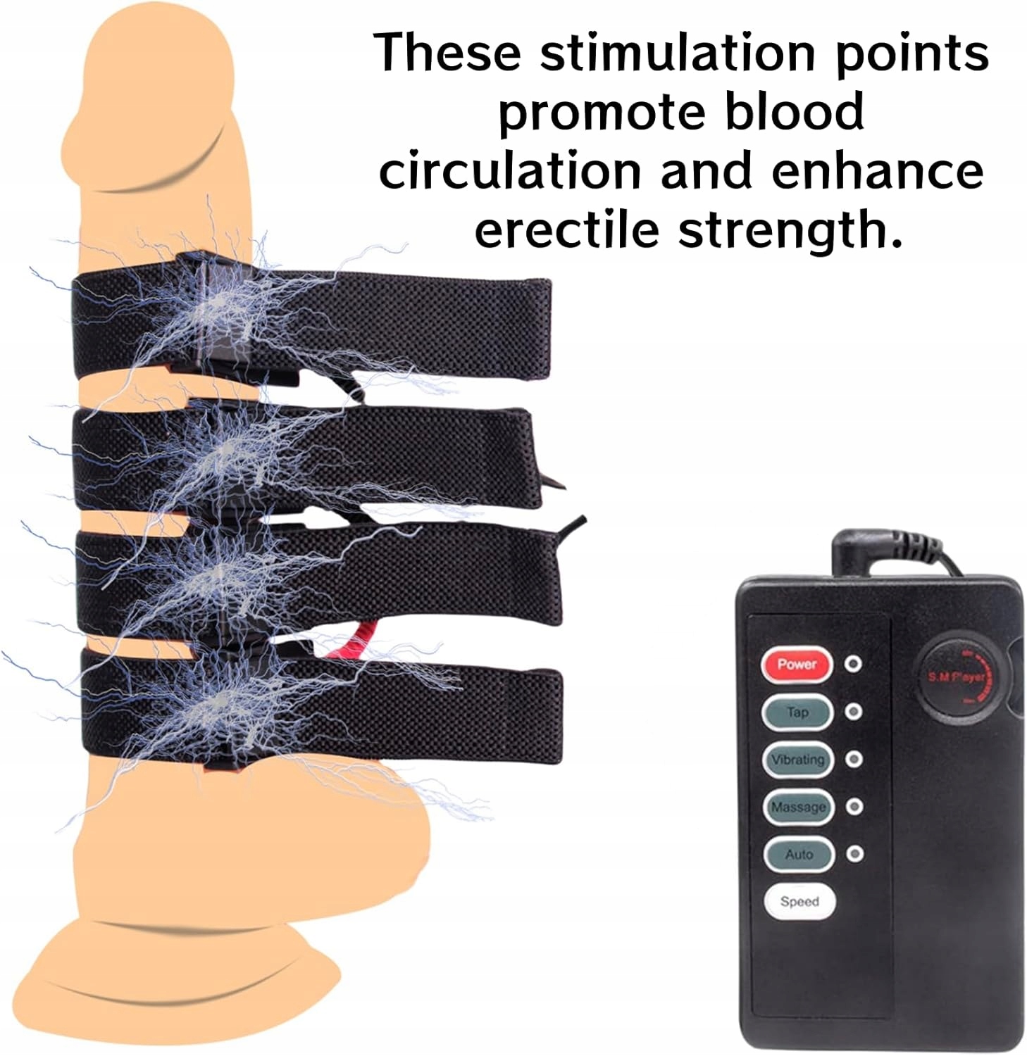 Точный массаж для большей выносливости и удовольствия: электрошоковое кольцо оснащено четырьмя специально разработанными физиотерапевтическими кольцами, которые массируют основание, стержень и кольцо головки. Эти точки стимуляции улучшают кровообращение и увеличивают силу эрекции. Независимо от того, во время взрослых игр или мастурбации – это отличная эротическая игрушка.