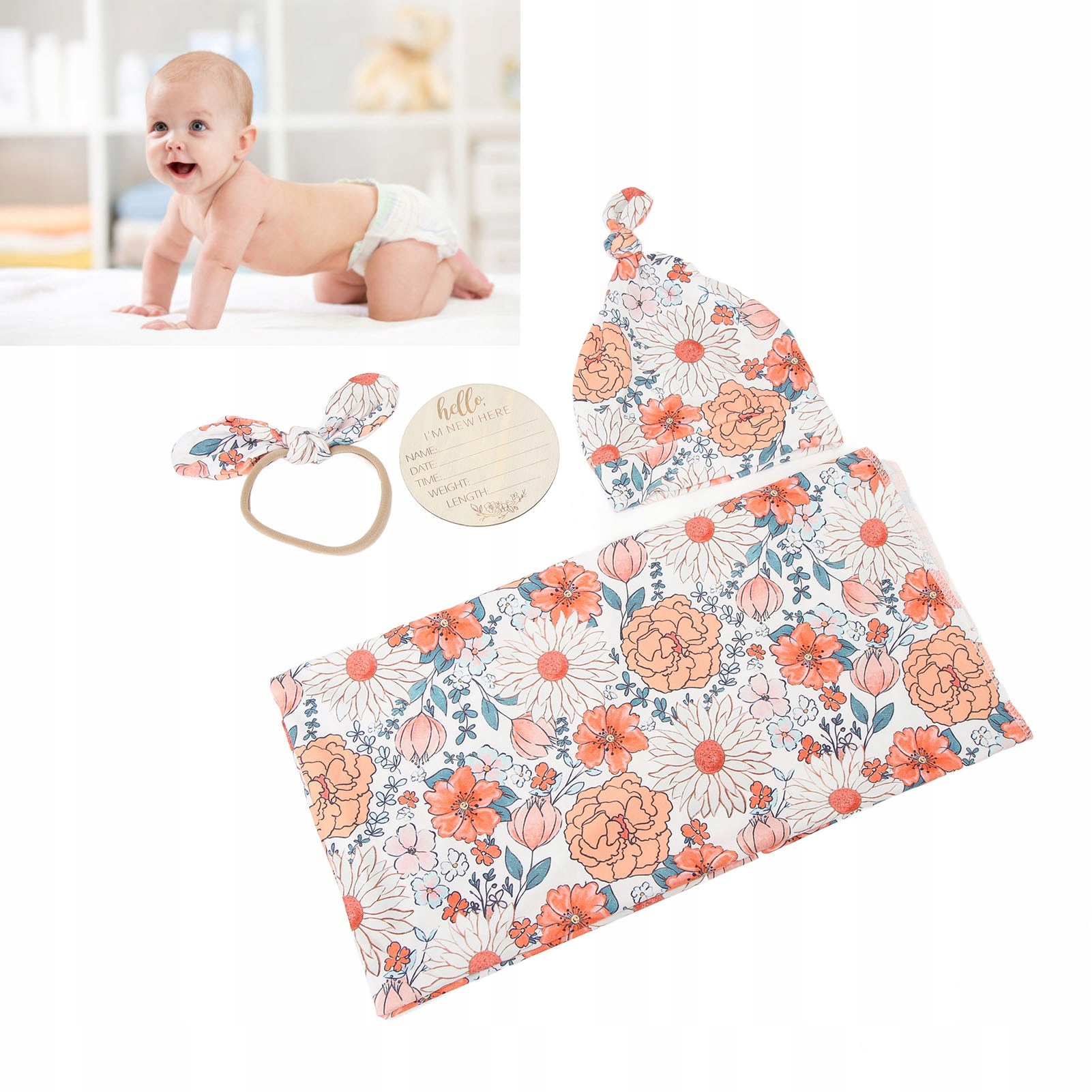 4. Набор из четырех частей: набор пеленок для новорожденных с цветочным принтом содержит пеленку, шляпу, прическу и кулон на месяц для различных потребностей.