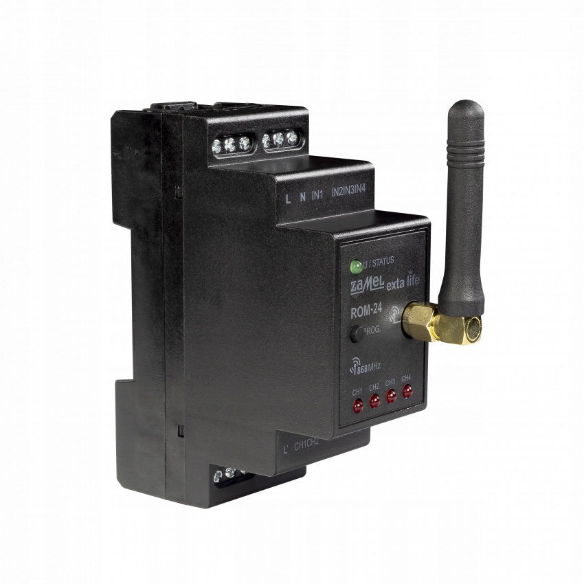 Модульный радиоприемник РОМ-24 является завершающим элементом системы EXTA LIFE, позволяющим независимо управлять до четырьмя устройствами/цепями. Выходы выполнены в виде четырех реле с нормально разомкнутыми контактами с максимальной нагрузочной способностью 5 А. Это позволяет управлять низковольтными цепями (например, 12/24 В переменного/постоянного тока) и высоковольтными цепями (230 В). В переменного тока). Приемник хорошо работает при удаленном запуске других устройств. Его можно с успехом использовать для подачи управляющих сигналов. РОМ-24