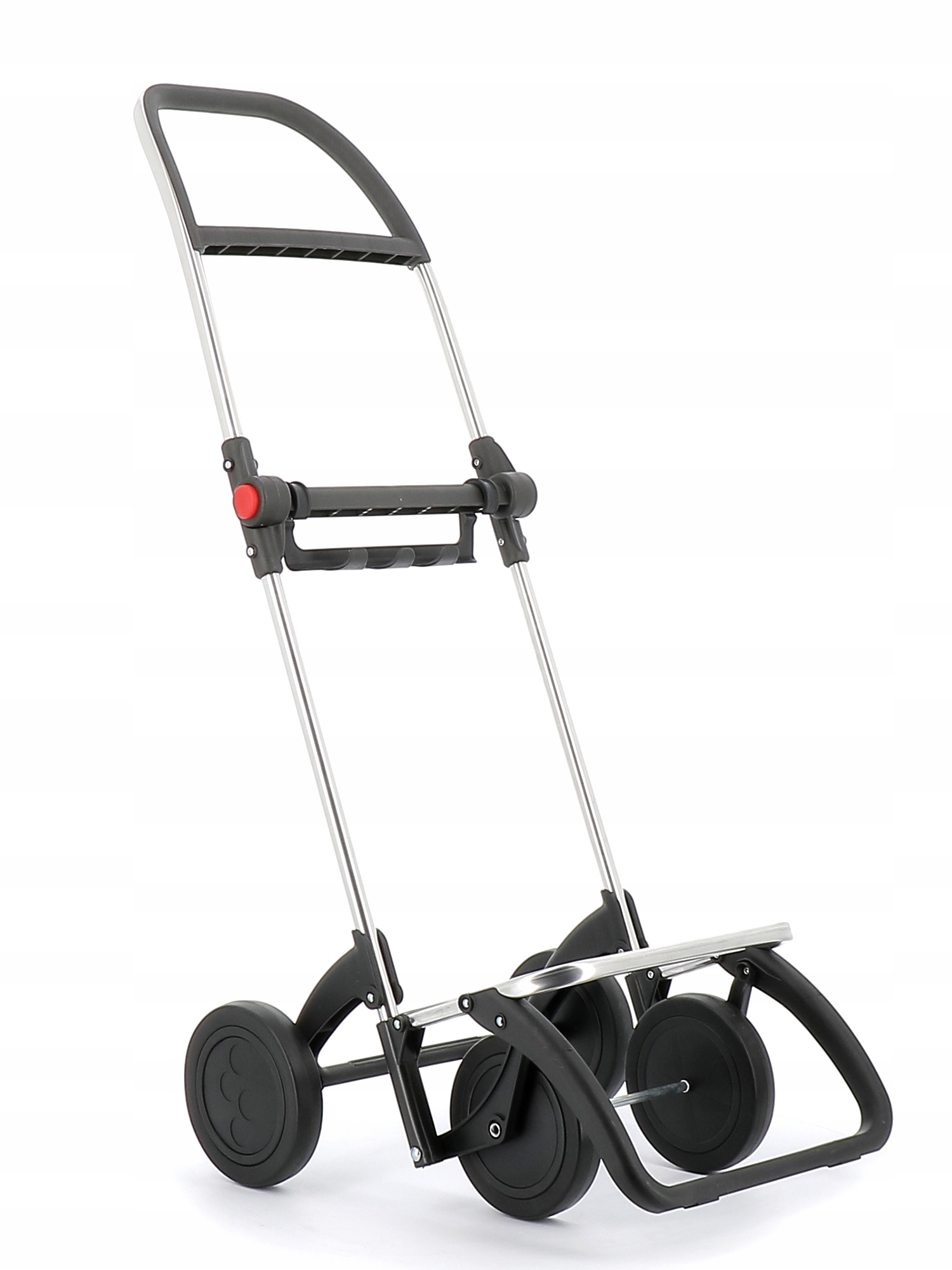 - Полускладывающаяся рама. Одним движением тележка становится вдвое меньше других тележек.