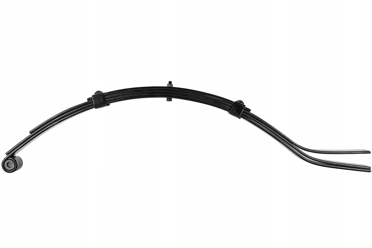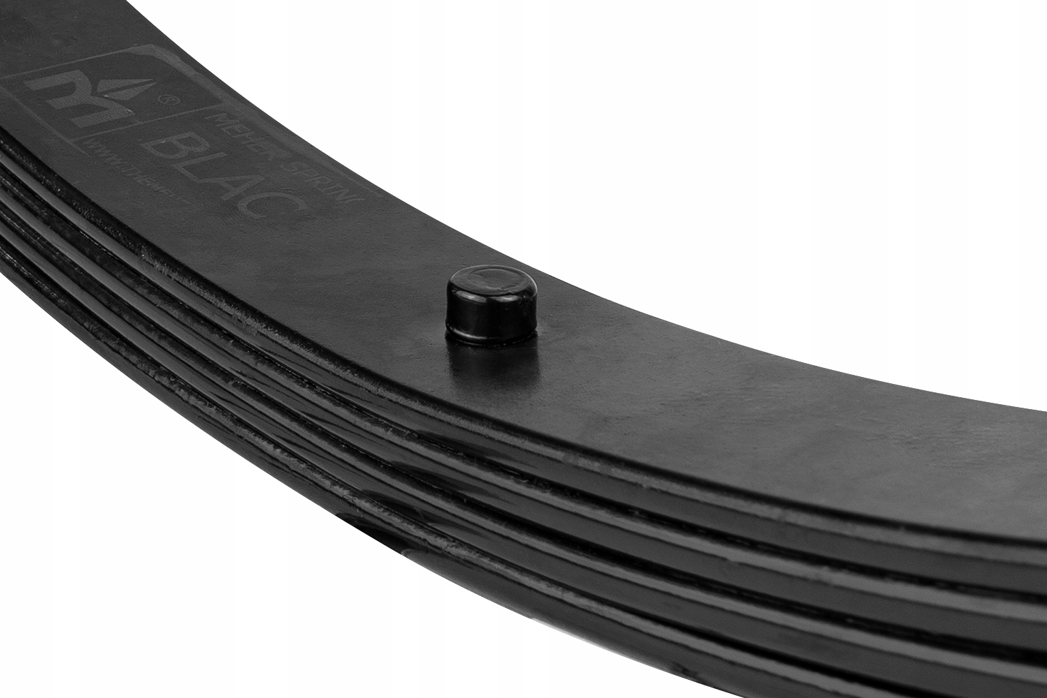 4-листовая рессора для легковых прицепов. Усилие пружины составляет 375 кг. Его прогиб при максимальной нагрузке составляет 47 мм (+/- 4 мм).