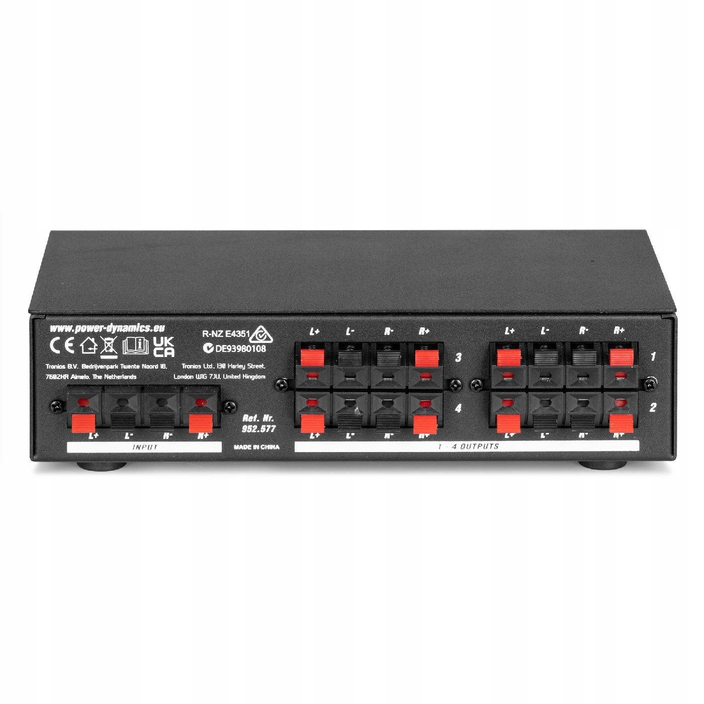 Идеальное решение для разделения звуковой системы на 4 переключенных зон. Этот стереодинамичный переключатель позволяет вам разделить динамики с низким импедансом на 4 канала и дает вам возможность включать или выключить. Установка быстрая и простая, а кабели громкоговорителей подключены с использованием зажимов, нажатых на задней части устройства, без необходимости дополнительных плагинов. Наслаждайтесь гибкостью и контролем над звуком в вашем доме или компании!